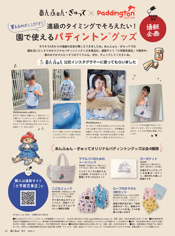 園生活にピッタリのオリジナルパディントングッズを商品化。通販サイト「小学館百貨店」で販売中。