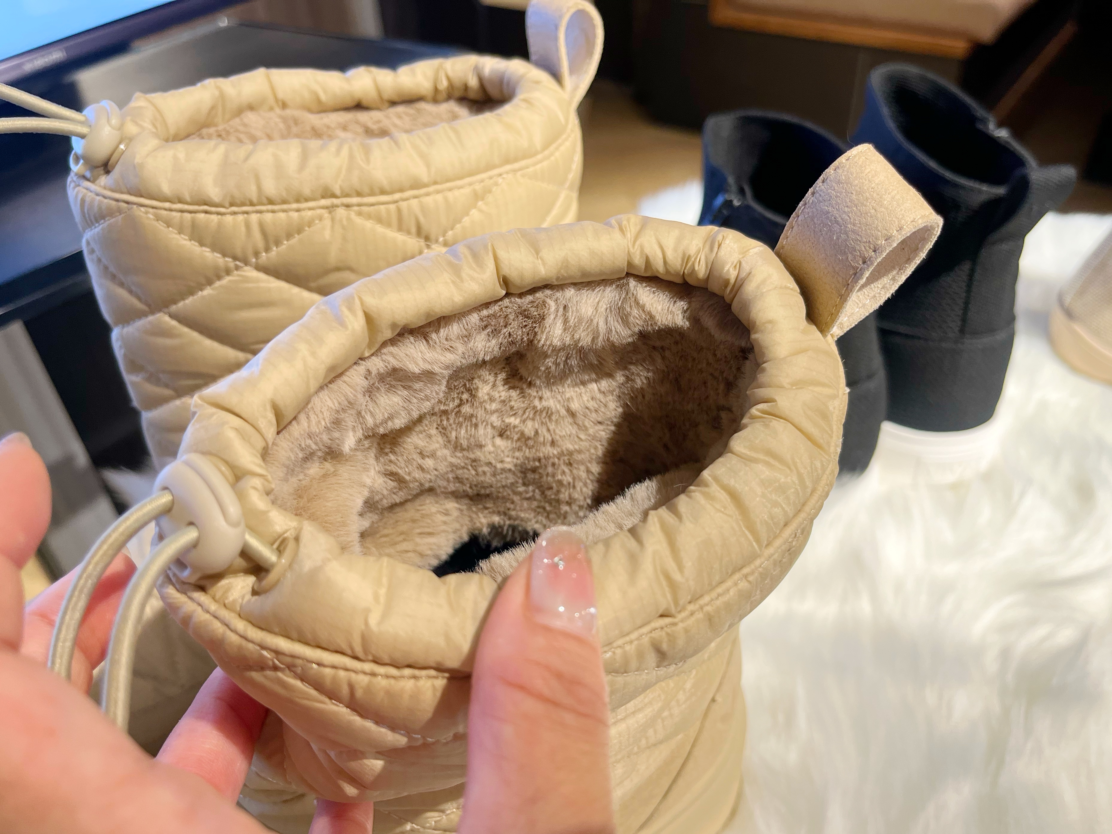 「Theo」はミドル丈でキルティング模様がコーディネートのポイントに。履き口に付いたドローストリングを絞ることでより暖かさを維持できるだけでなく、シルエットに変化が出るため、その日の気分によって着こなしを楽しめます。
