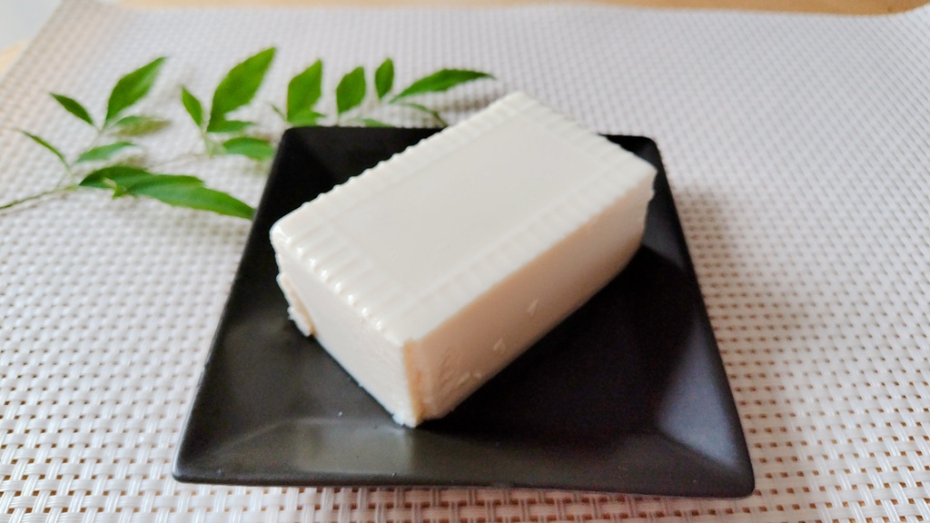 木綿豆腐よりも濃い豆乳に凝固剤を加えて、そのまま固めて作ったものです。
