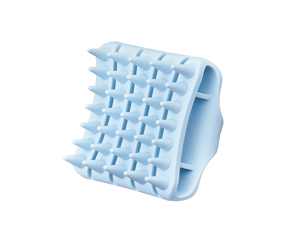 柔らかいシリコーン製の円錐型突起で頭皮をすっきりもみほぐします。隙間構造のブラシが頭皮にフレキシブルフィットし、カーブした大きめのブラシ面が頭皮に広くアプローチします。シャンプーブラシとしても使え、指先だけでは落ちにくい汚れやべたつきを洗い上げます。