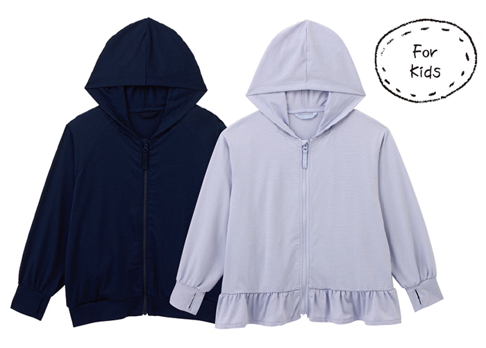 薄手で軽いのにUVカット率90%以上のキッズ用UVカットパーカ。吸水速乾のメッシュ素材なので、外遊びはもちろん、室内での温度調節にも重宝します。2790円から。サイズは100~160cm(フリルパーカは150cmまで)。