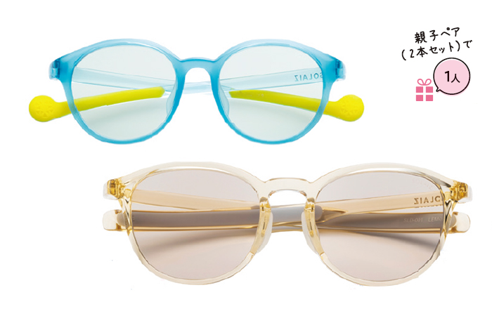 ダメージを与える光をカットして目を守るアイケアグラス。キッズ向けは転倒時の衝撃を吸収するクッション構造など安全面にも配慮。各9900円。