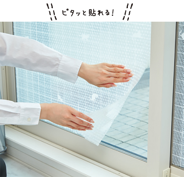 窓に貼るだけで紫外線を約90%カット。裏面は粘着付きで、ハサミで好きな形にカットすればどんな窓にもぴったりフィット。約90×180cm、1628円。