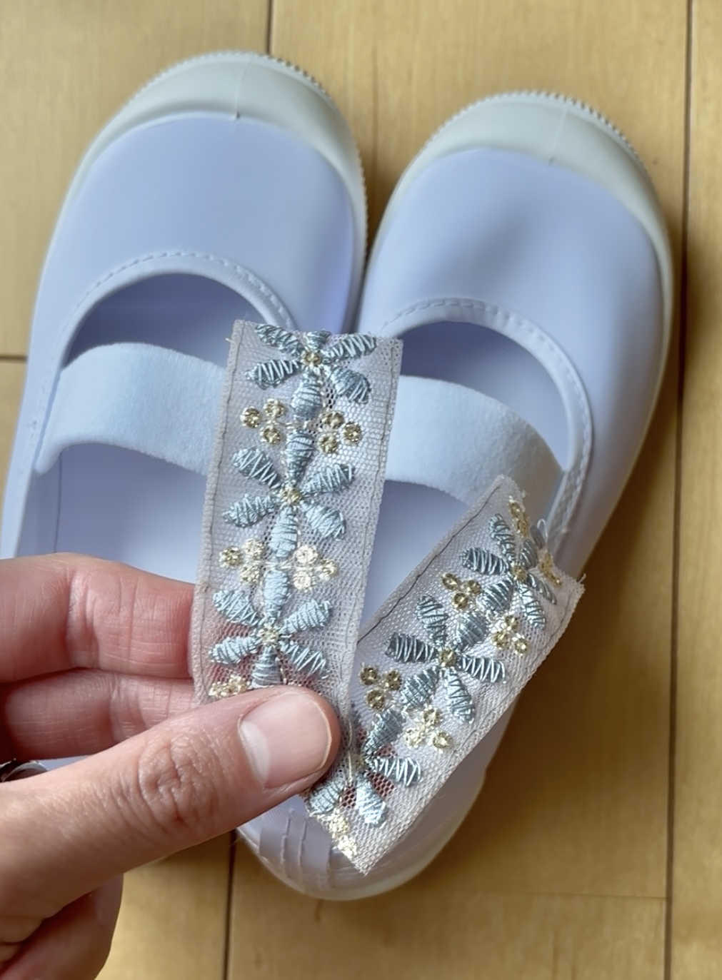 真っ白な上履きが変身!リボン&刺繍アレンジの簡単アイデア