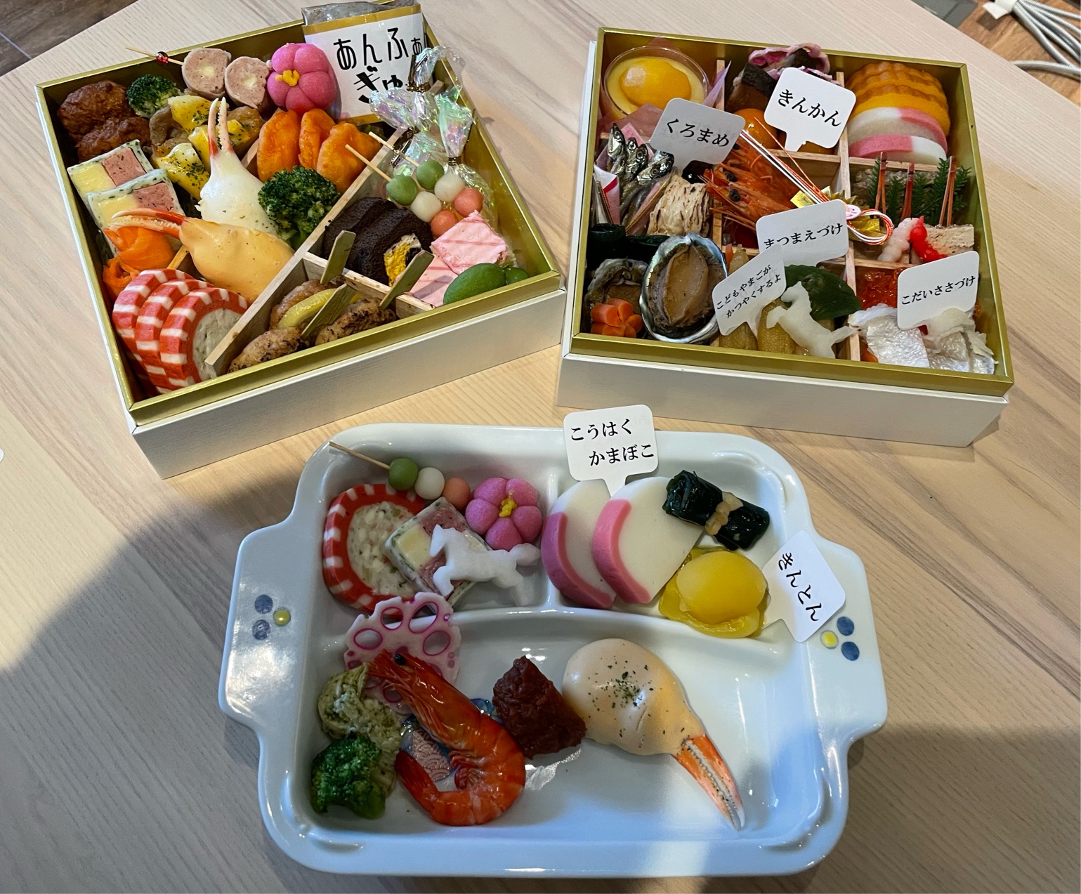 あんふぁん・ぎゅってでは、「食」を通じて子どもの豊かな心を育む「食育」という考えを大切にしています。さらに「行事育」(行事を楽しむことの大切さ)の考えから、1年の始まりの日本の伝統行事「お正月」に食べる「おせち」で本来の食材に込められた意味や願い・伝統的なおせちを伝えたいという思いが込められています。家族や親族と集まり囲んで食べるおせちの思い出が、子どもの成長と積み重なっていくようにと、素敵な思いが込められたおせちになっています。