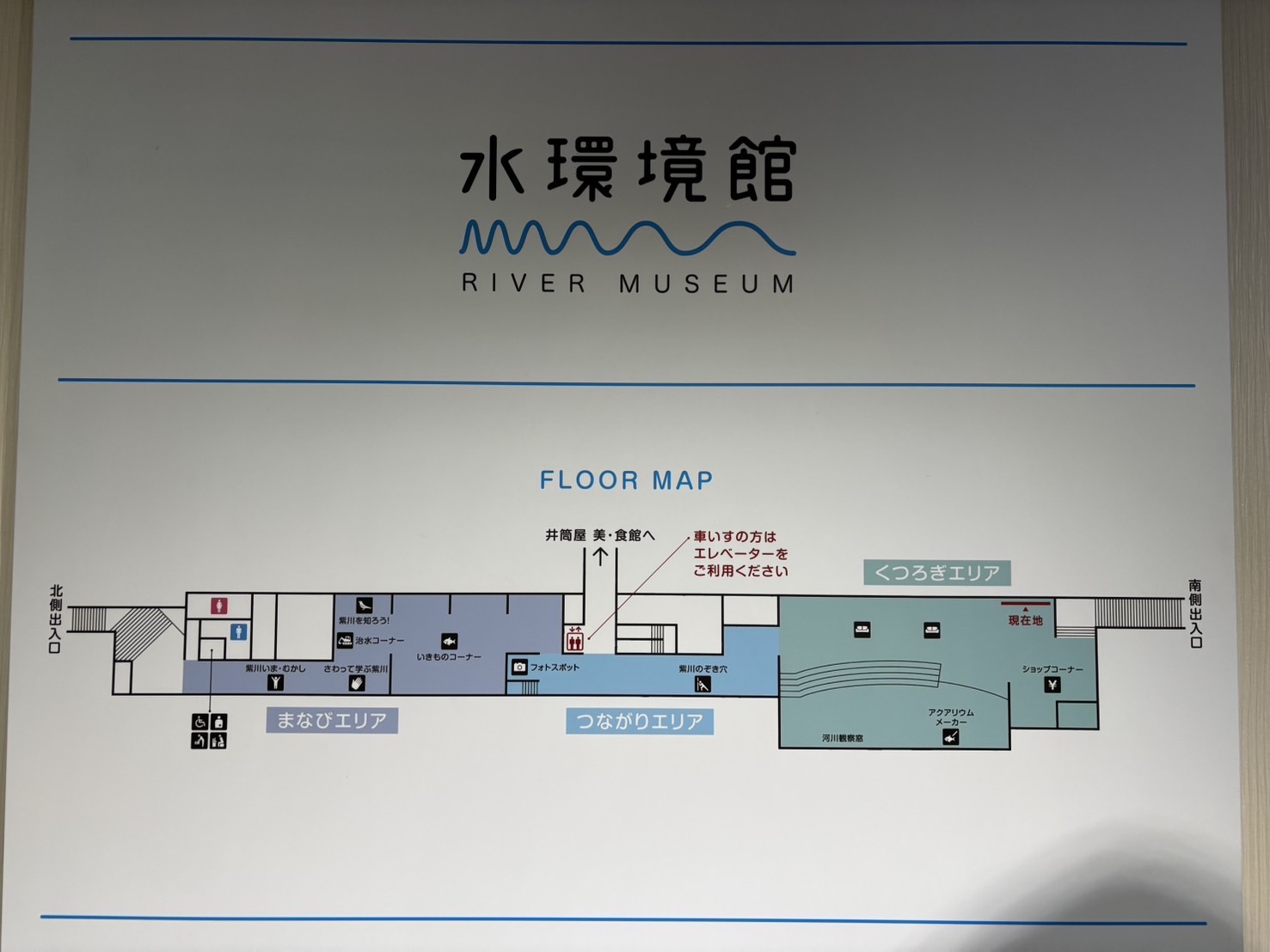 紫川に生息する生物をまるで水族館のように展示していたり、ゲームやアトラクションを楽しみながら河川について学べるコーナーがあります。