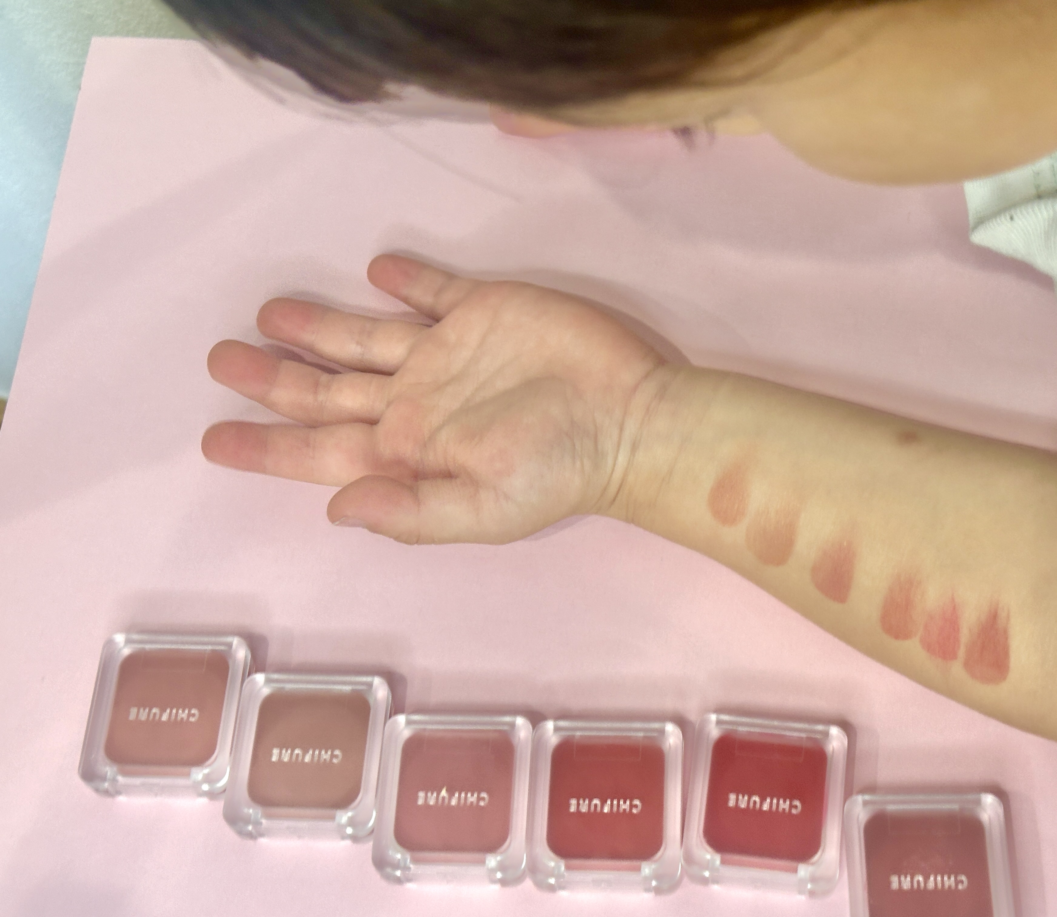 試したのは、今年の3月に発売した「ちふれ」のリップ&チーク バームです。この商品は、チークとリップのどちらにも使えて、今みんなが注目している「統一感があるメイク」ができること。そして、素肌の透明感を引き立てることに着目したカラーラインナップが売りとのこと。