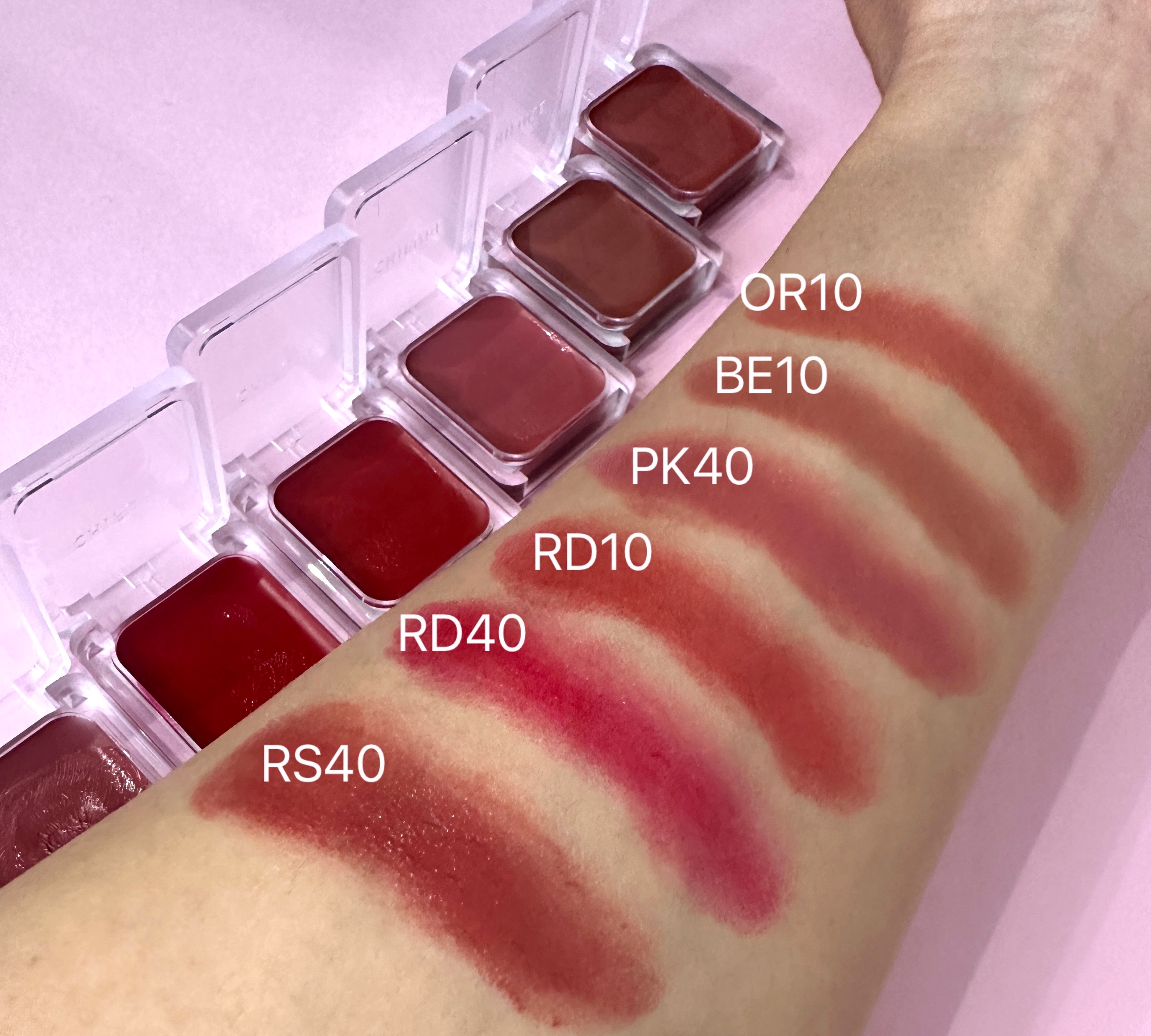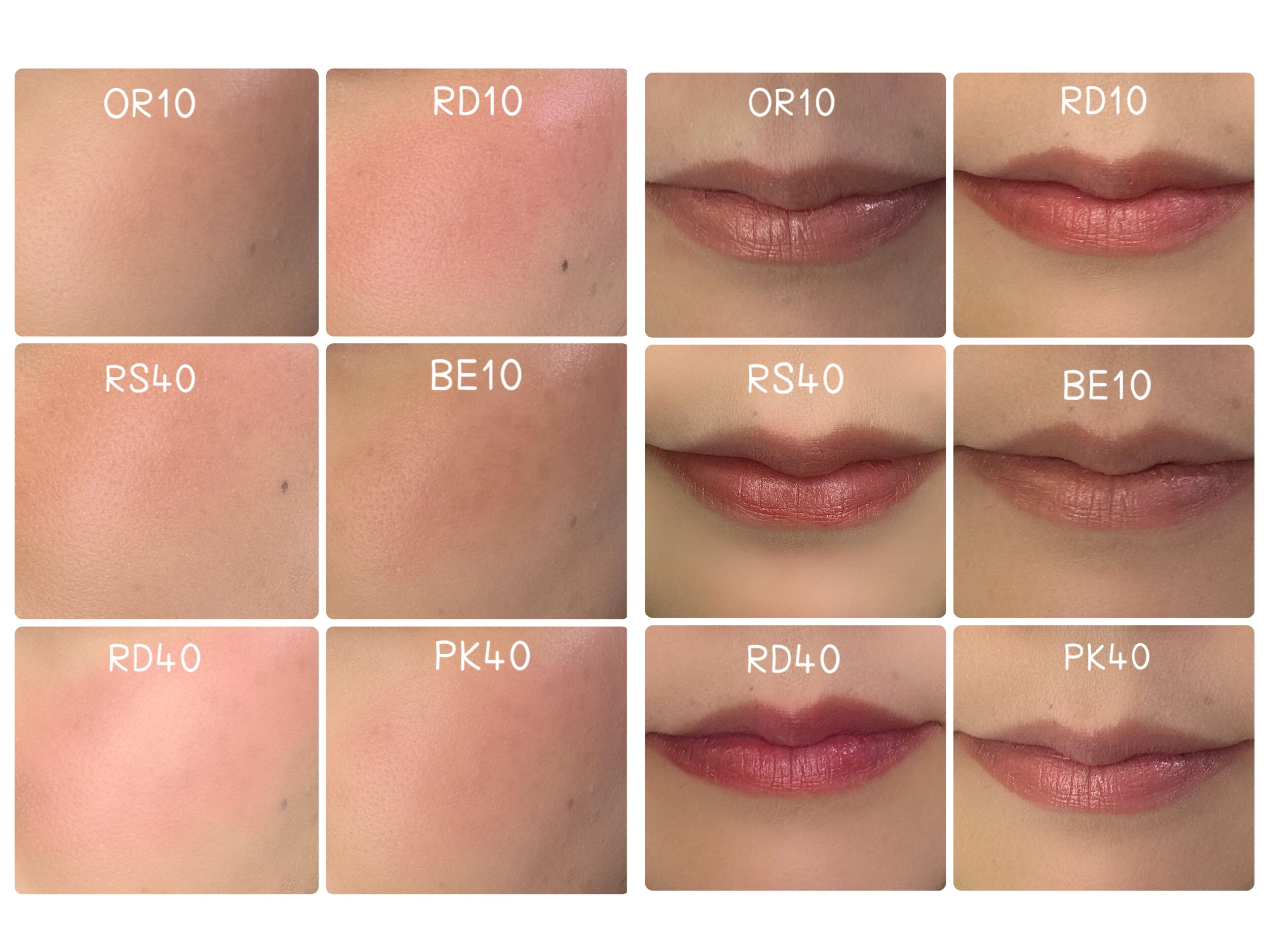 全体的にしっかりと発色しました。レッド系とピンク系は似合わないことが多いのですが、腕に塗ってみたらどの色も意外と大丈夫そう…?実際に顔に載せていきます!