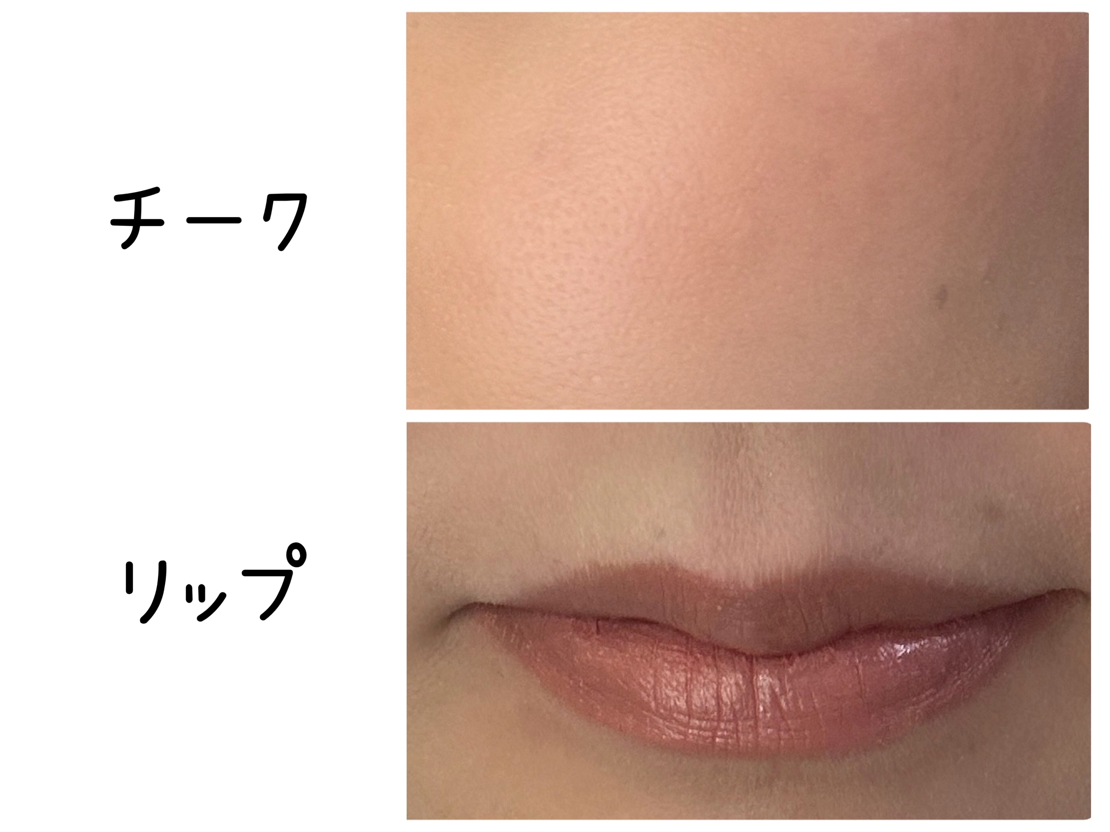 頬や唇に乗せるとオレンジ過ぎず、私の肌ではちょっとベージュ寄りに発色しました。オフィスメイクにもピッタリなお色です。
