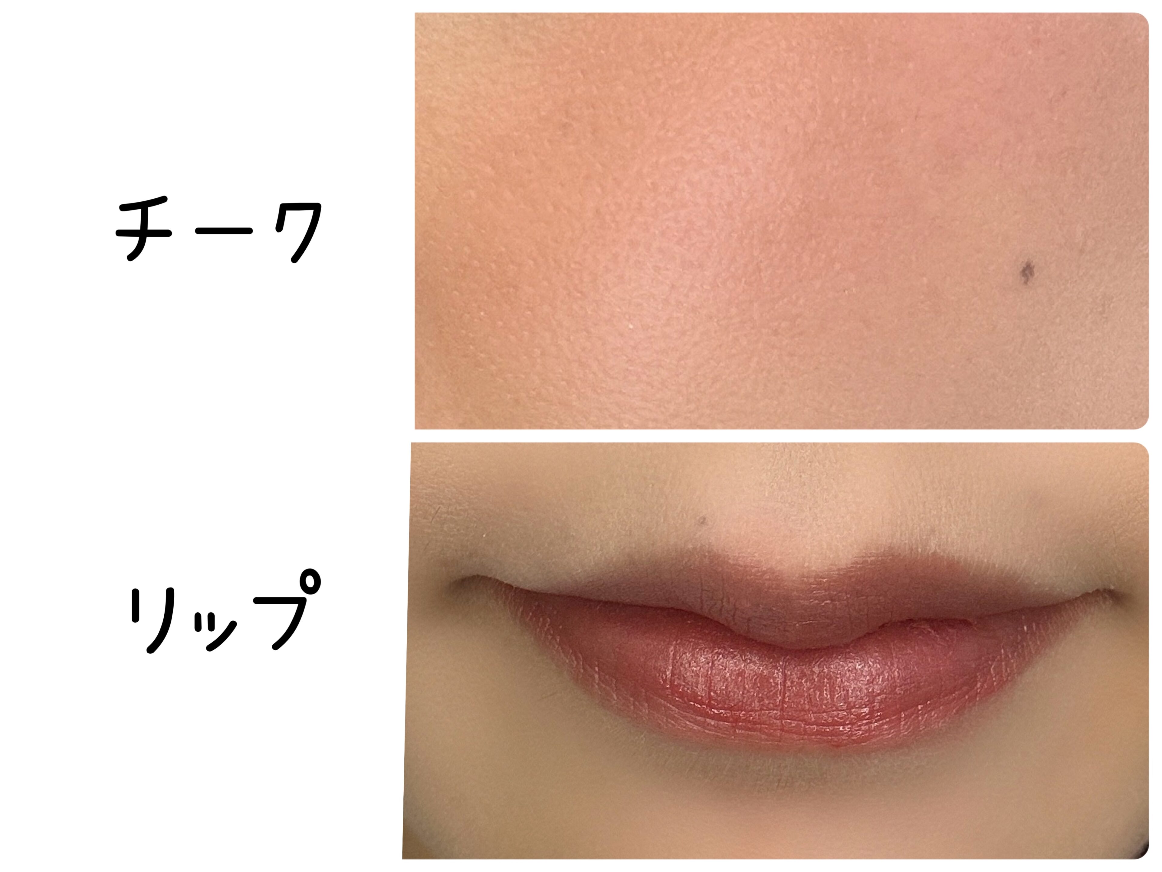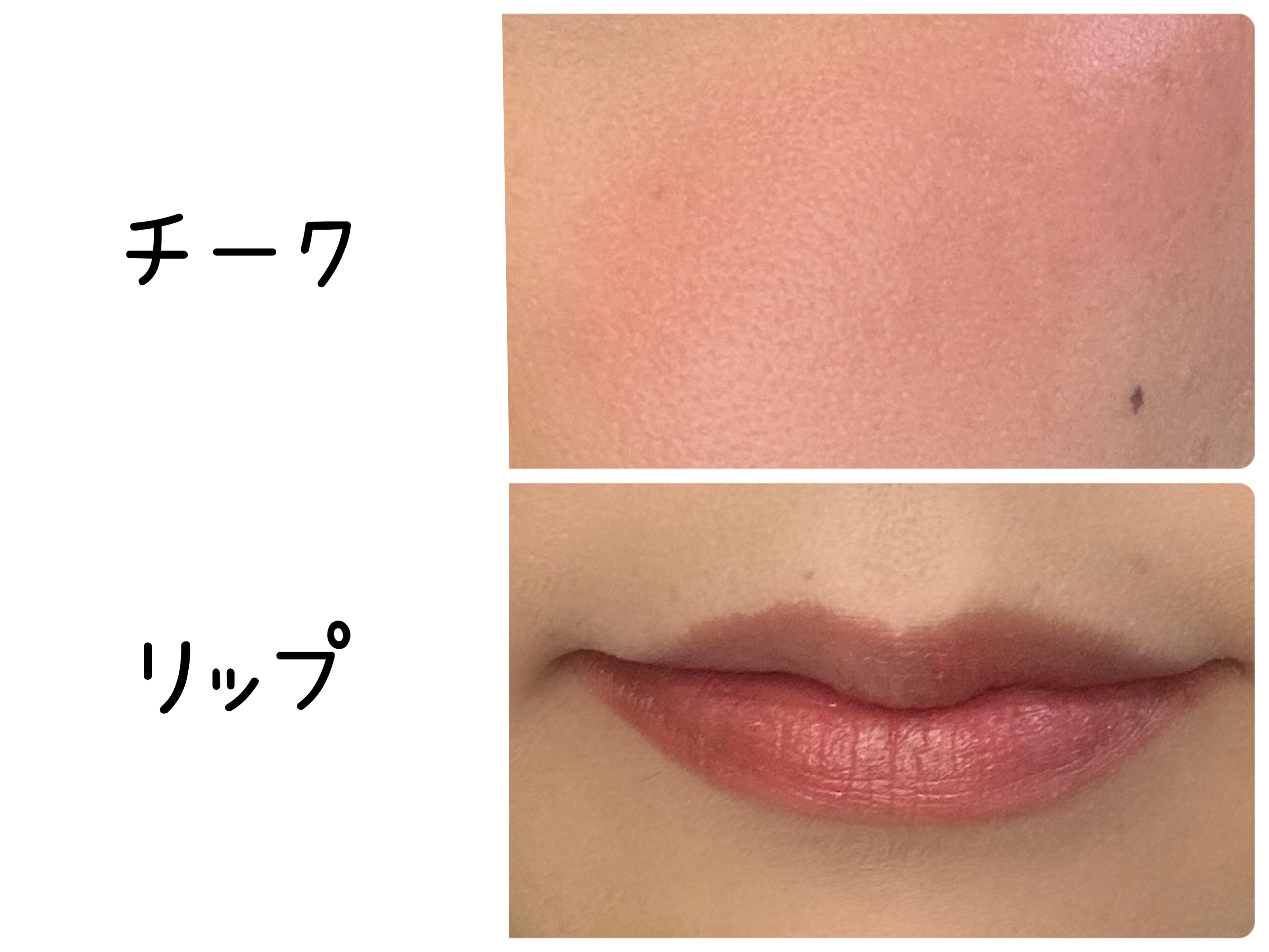 これは…!期待していなかったのでビックリ!私でも、くすまない赤色でした。肌に乗せるとちょっとピンクの様なベージュの様な赤色。華やかにしたい時にピッタリ。
