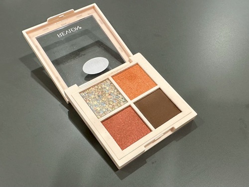 セレクトいただいたのは、REVLONのアイシャドウ。左上のグリッターは色々な色が入っていてキラキラと輝きがすごい!最初は「ラメが強すぎるかも?」と思いましたが、実際につけてみると意外になじみ、目元を自然に輝かせてくれて、華やかな雰囲気に。ラメ以外の色はテラコッタカラーで、イエベ肌に合いそうですし、これからの秋の季節にもぴったり。すっかり気に入ってしまいました!