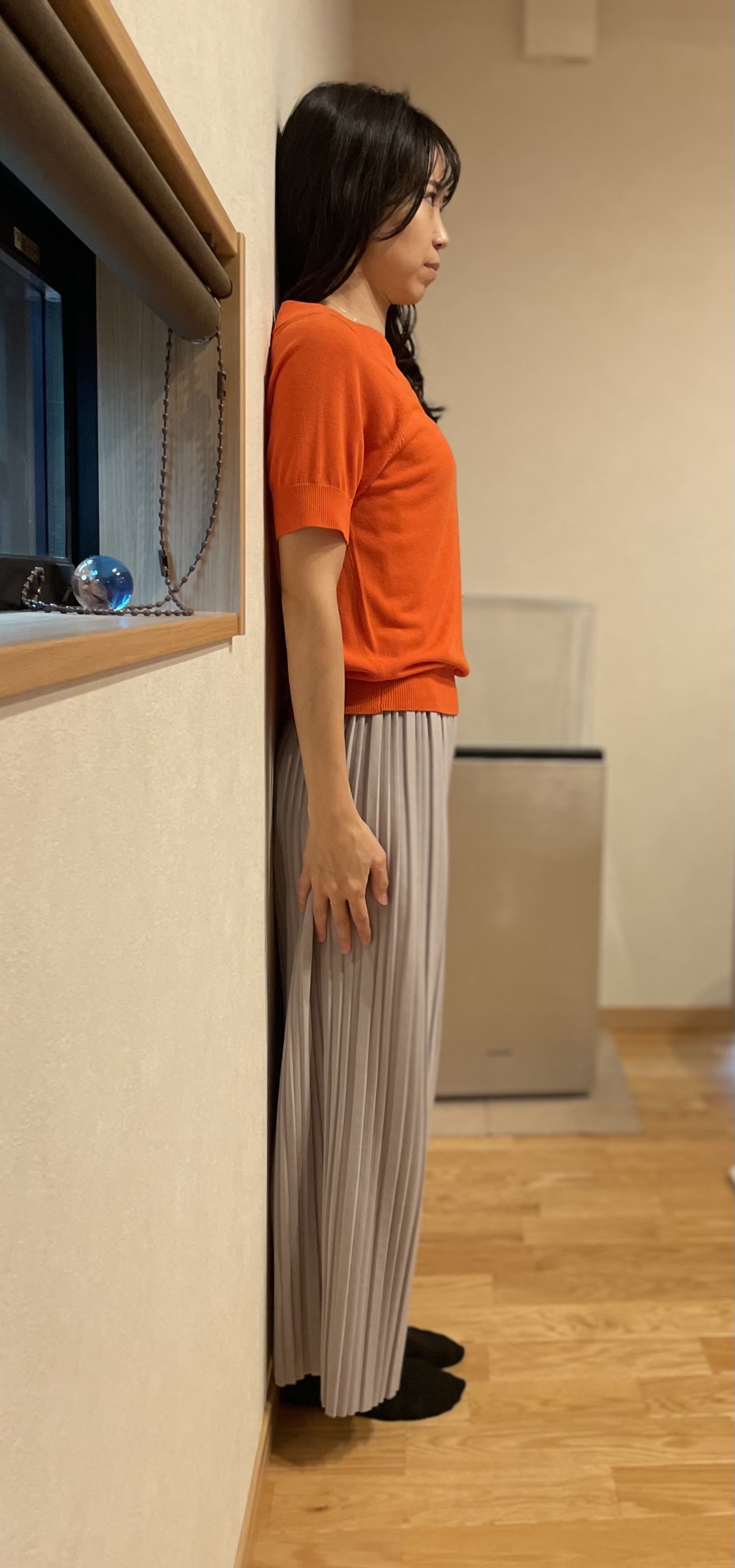 紹介されていた基本姿勢は、壁に背中をつけて立ち、