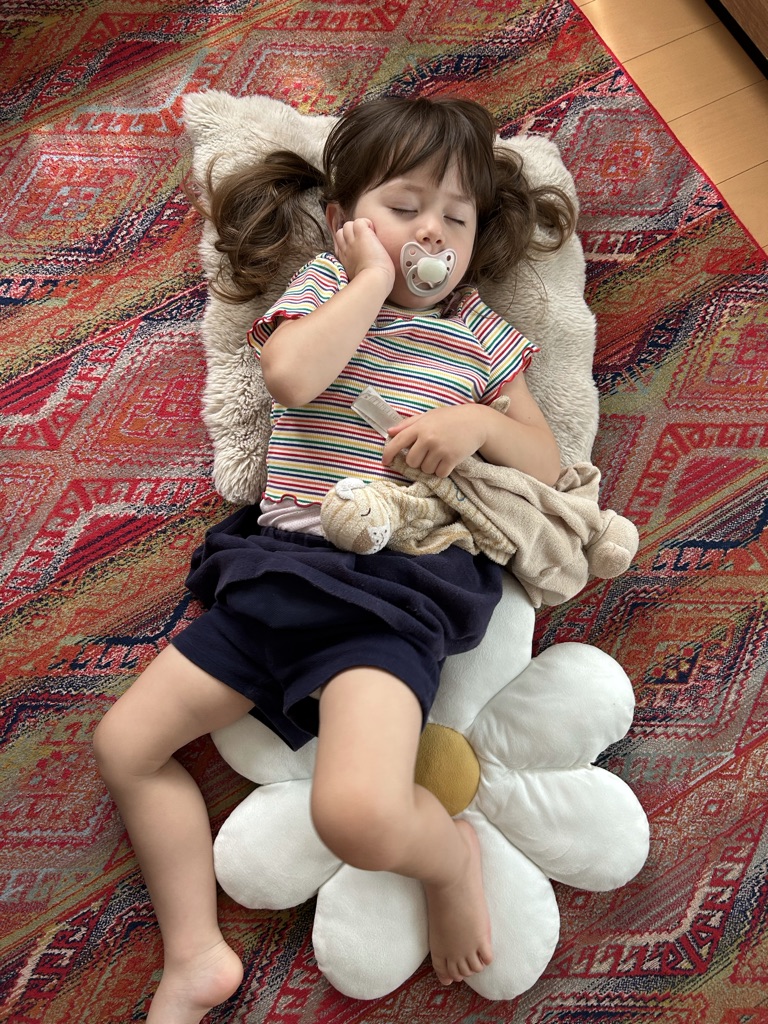 2日目もなんとか寝かせることができ、3日目の夜にはおしゃぶりを使わなくても眠れるように。思っていたより早く落ち着いてくれて拍子抜けでした。卒乳の時と似ていて、お姉さんになった嬉しさと、もう赤ちゃんじゃないという寂しさでなんとも言えない気分になりました。