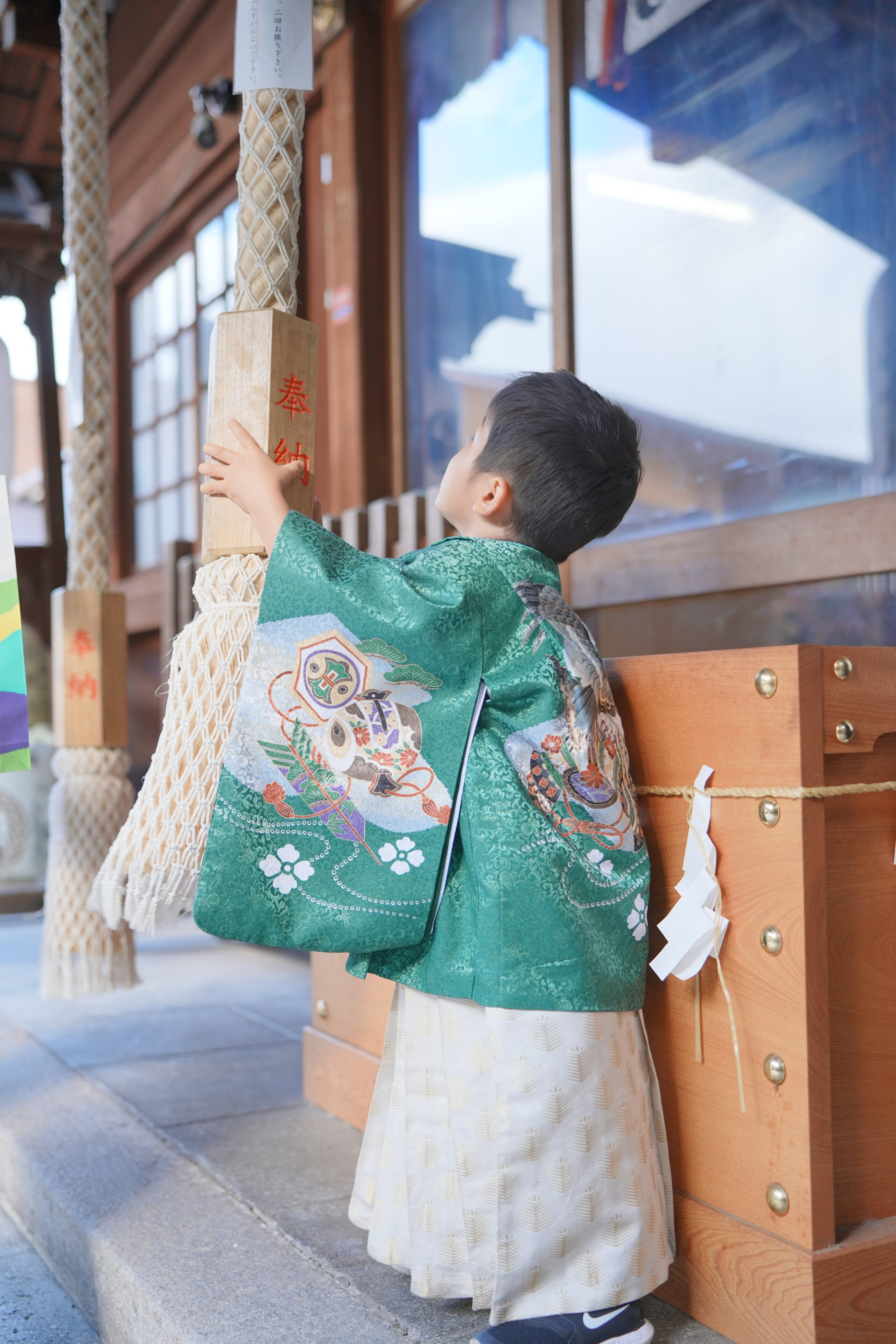 2.ご祈祷前に息子ソロ撮影:集中力が切れる前かつ、着崩れる前に済ませる