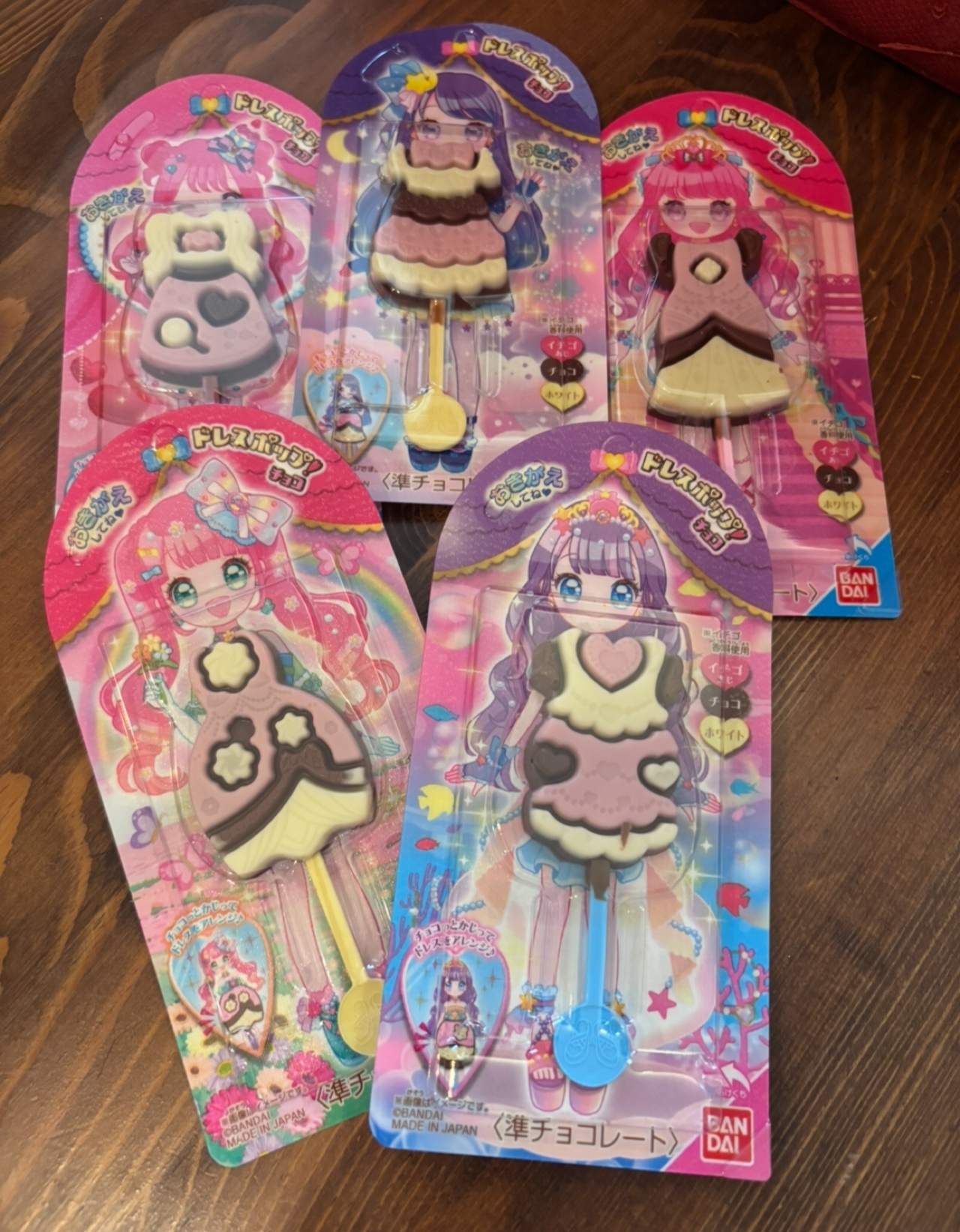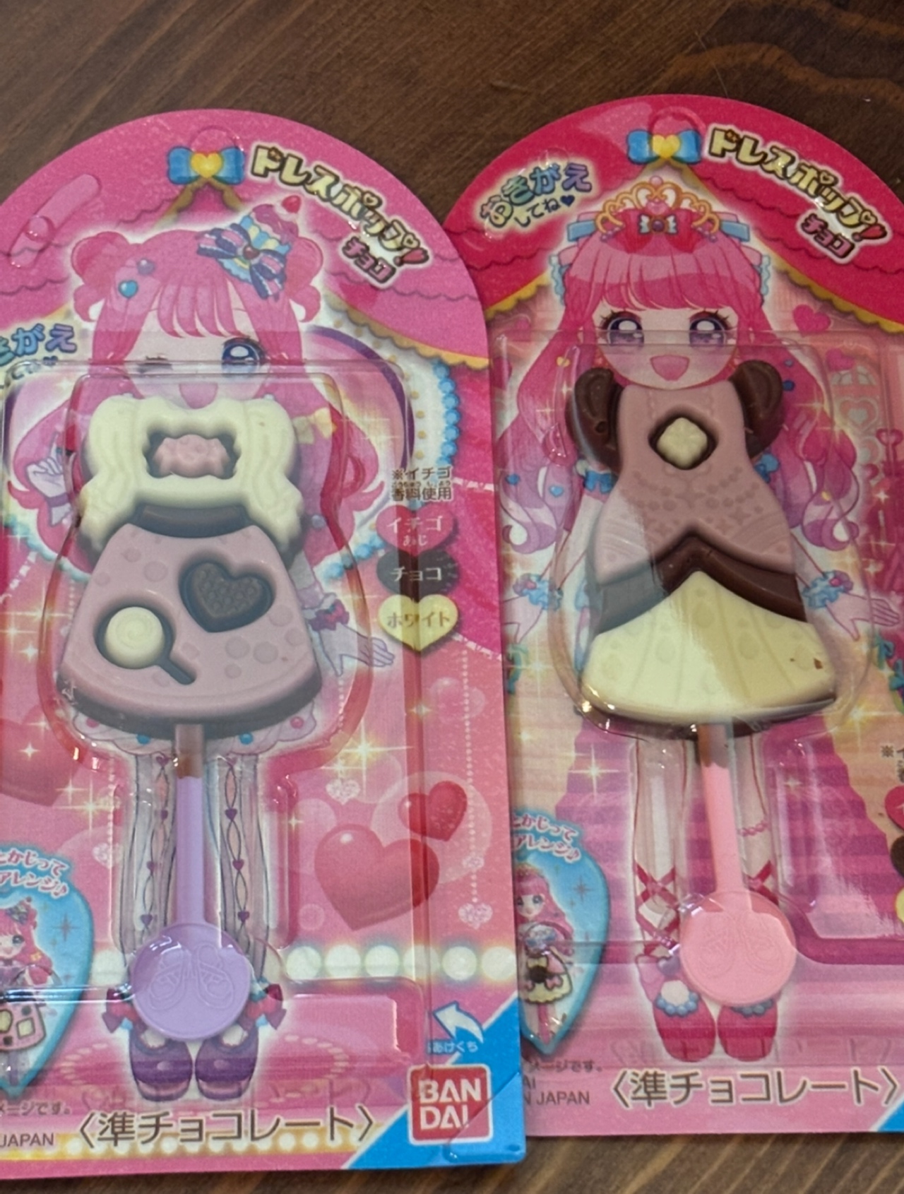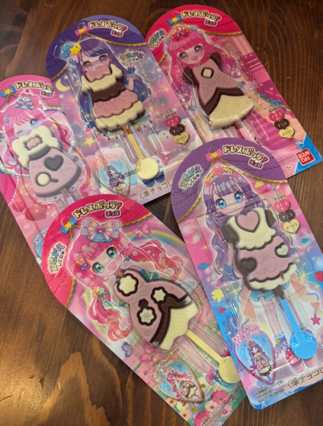 どれもキャラ物でかわいいし、棒付きで子供も食べやすく大好きでよく購入するんですが、今回発売されたポップチョコは、なんとドレスの形なんです!!!