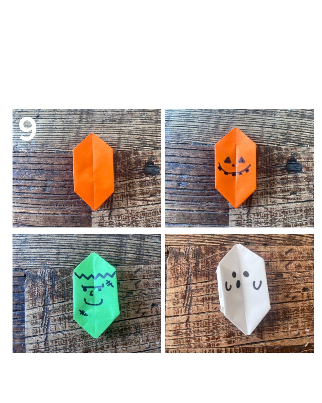 折ってふくらませて顔を描くだけで、かぼちゃやおばけ、フランケンシュタインに大変身!