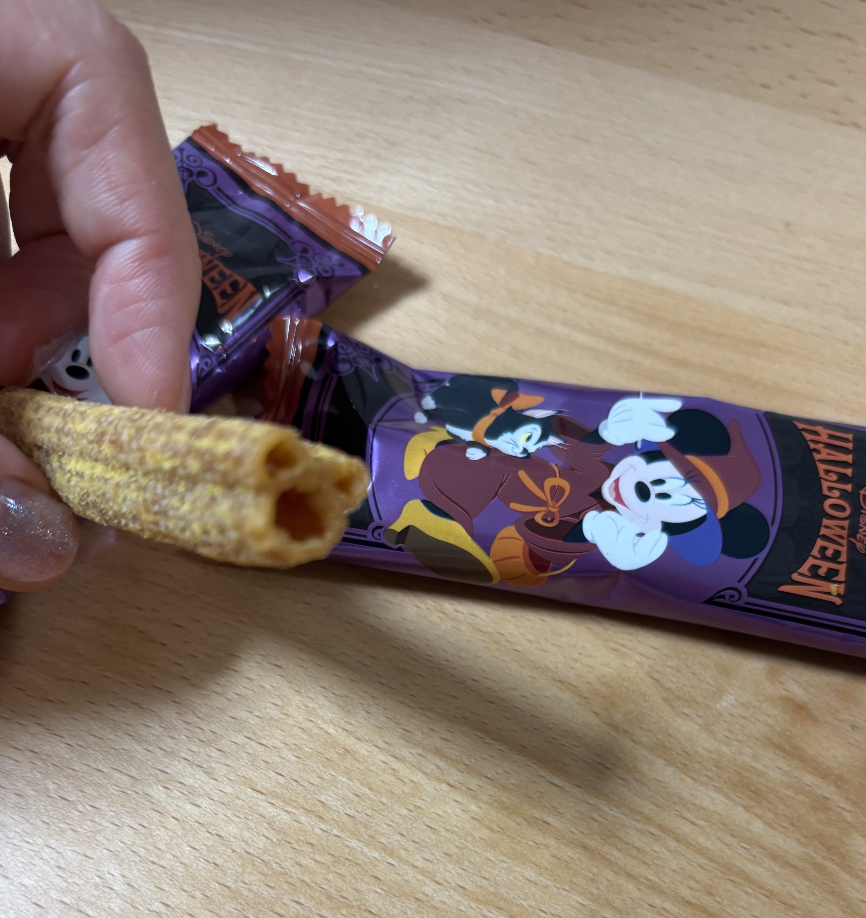 パークで期間限定で味わえるメイプルパンプキンチュロスをイメージしたスナック菓子です。