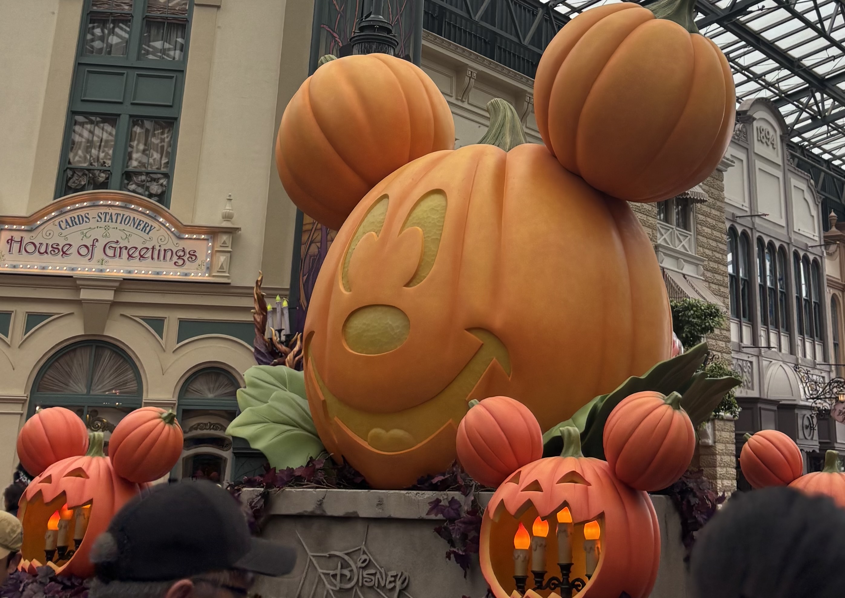 ワールドバザールには大きなミッキーかぼちゃのオブジェも登場しています。