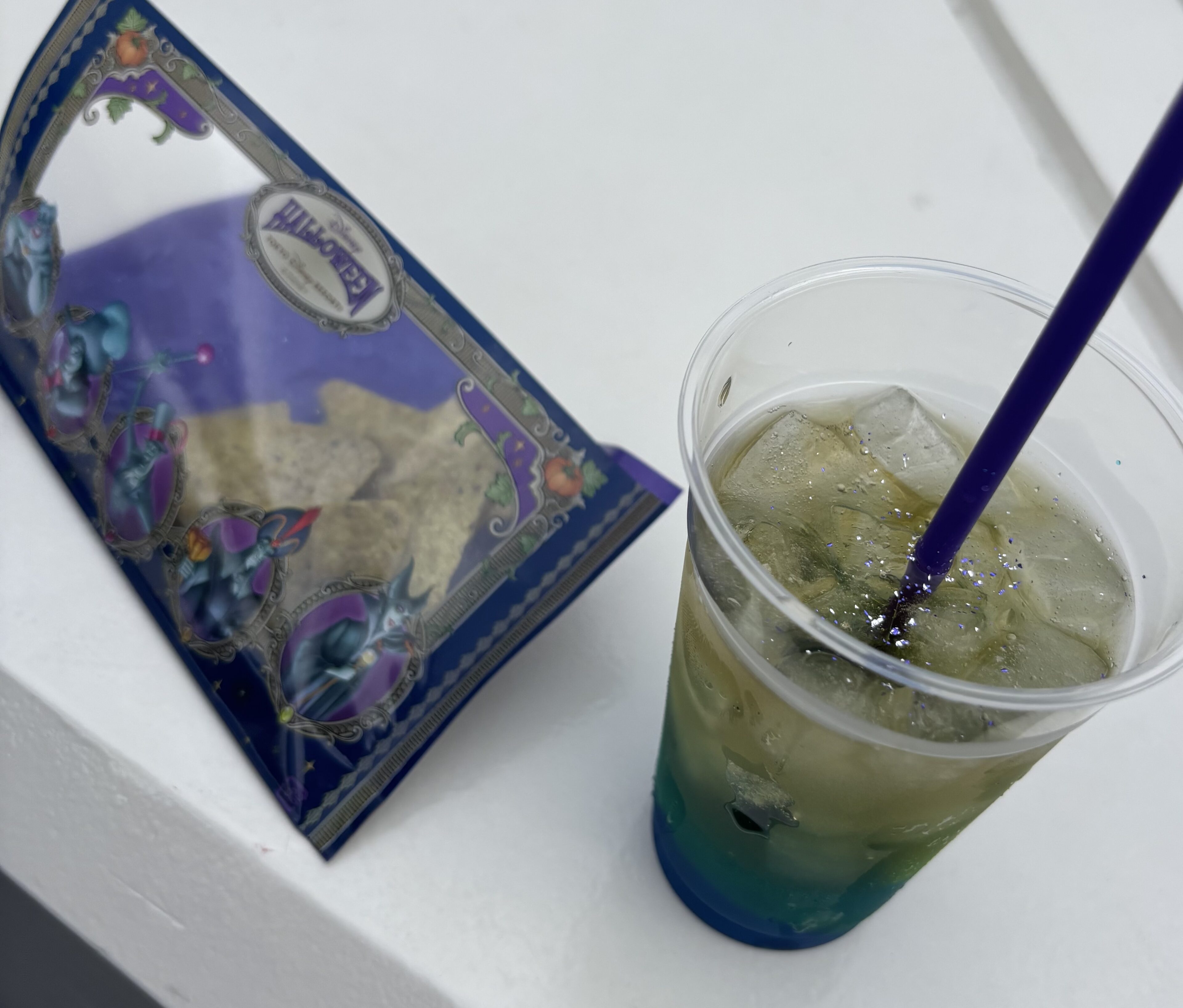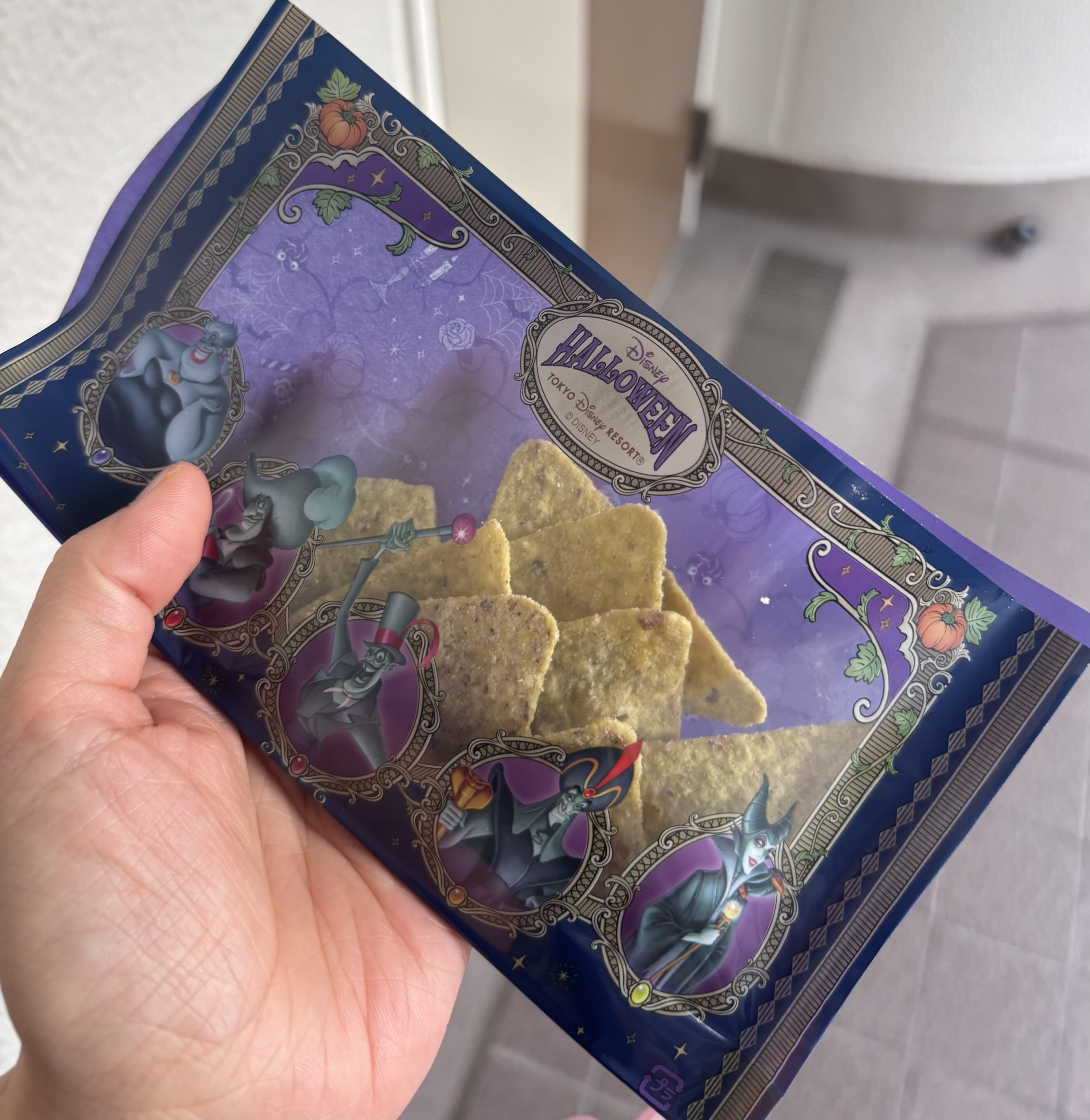 トゥモローランドにある「ソフトランディング」ではメニュー購入時「トリック・オア・トリート!」とレジのキャストさんに声をかけるとヴィランズデザインの袋に入ったコーンチップス(アボカド&チーズ味)をプレゼントしてもらえます。