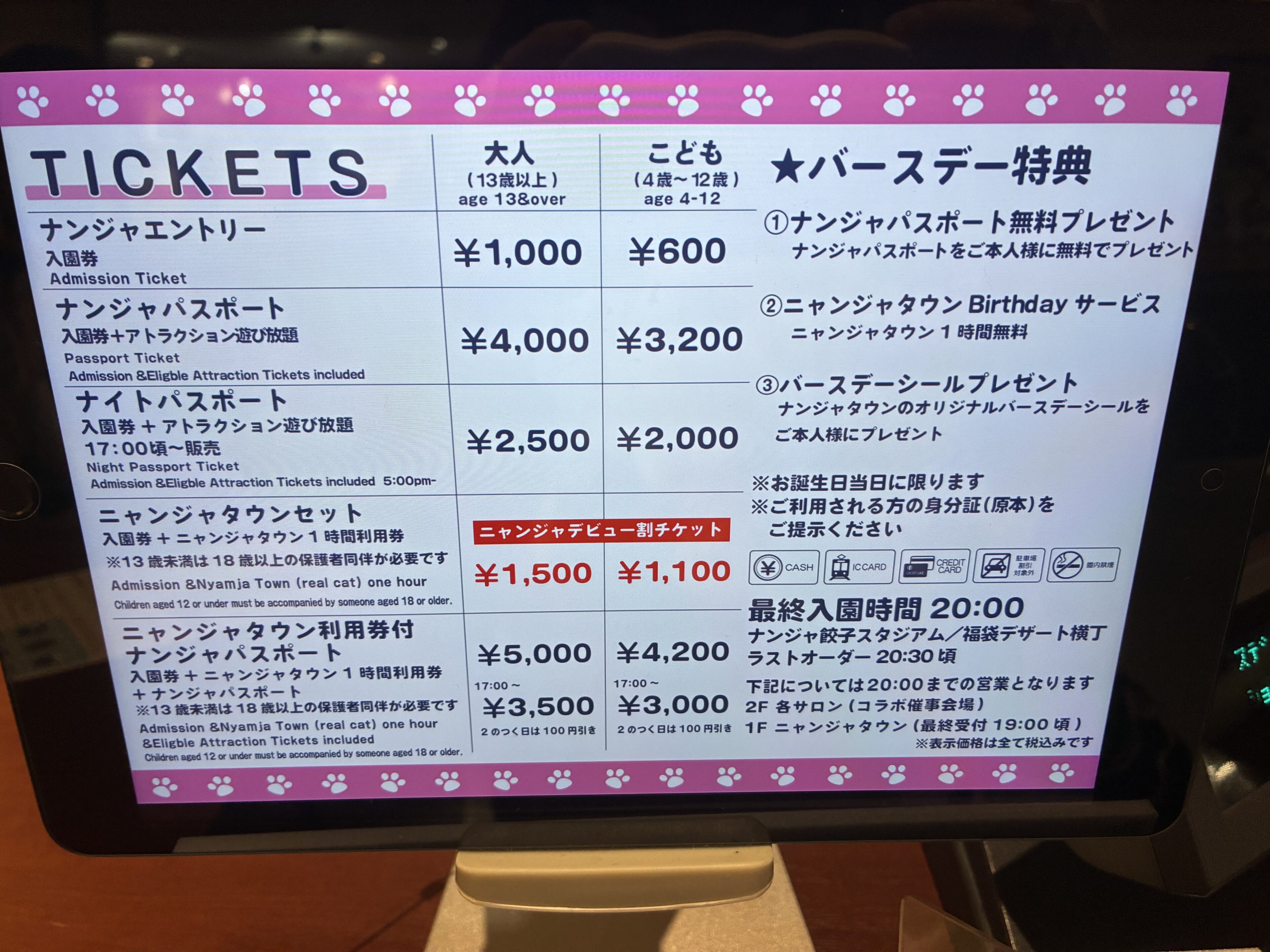ニャンジャタウンはナンジャタウンの入場料と別に利用料金を支払う必要があります。