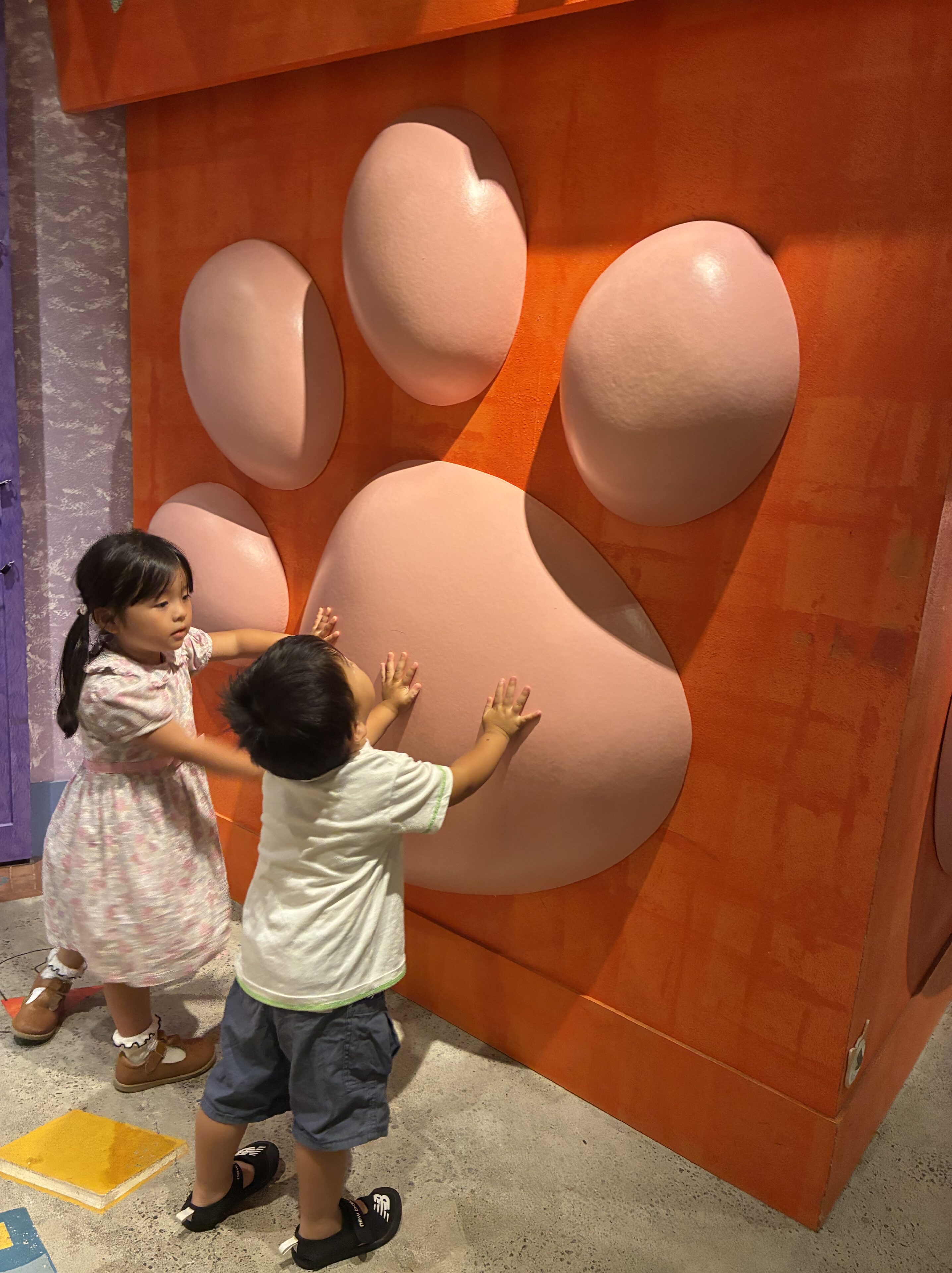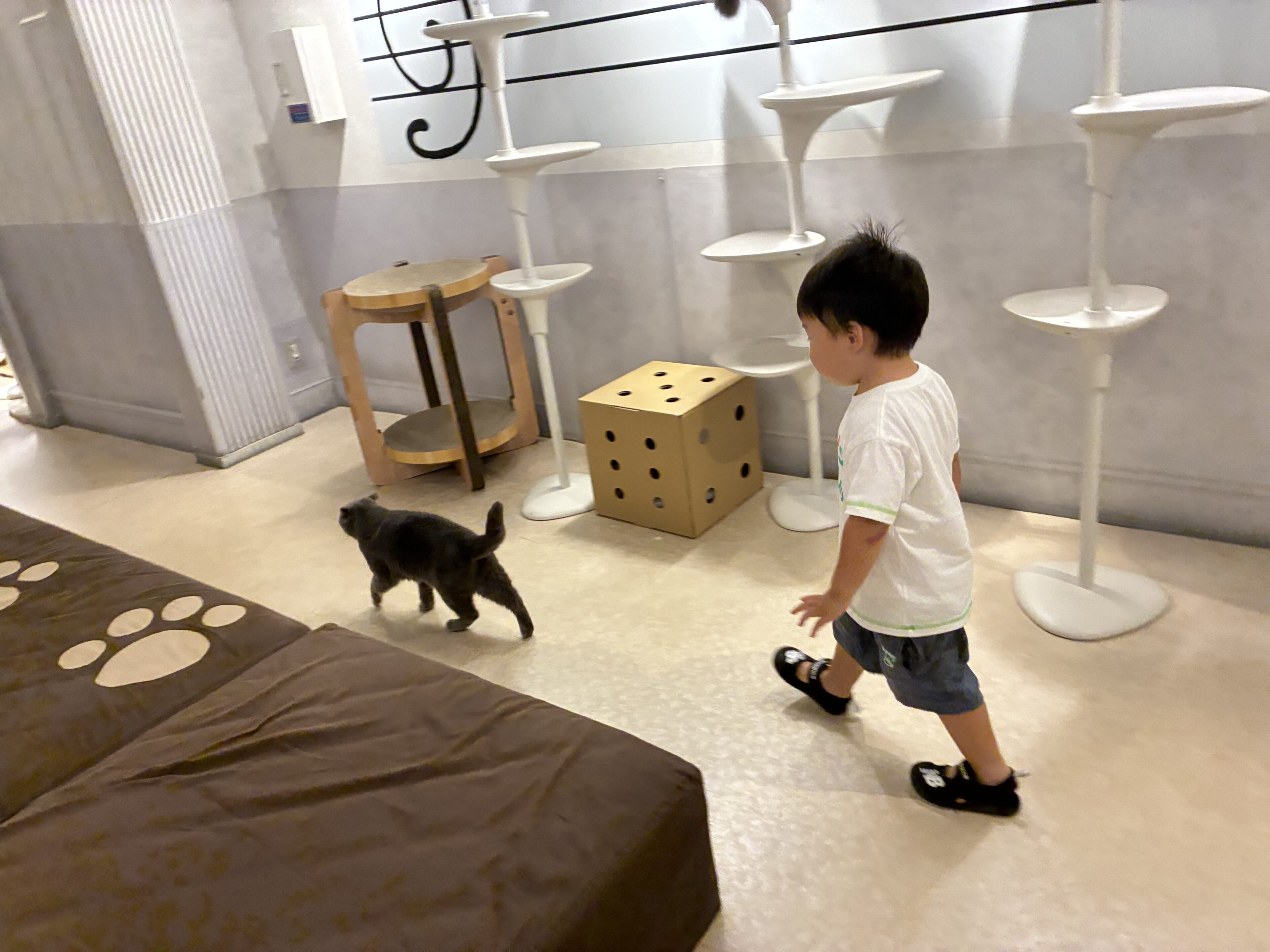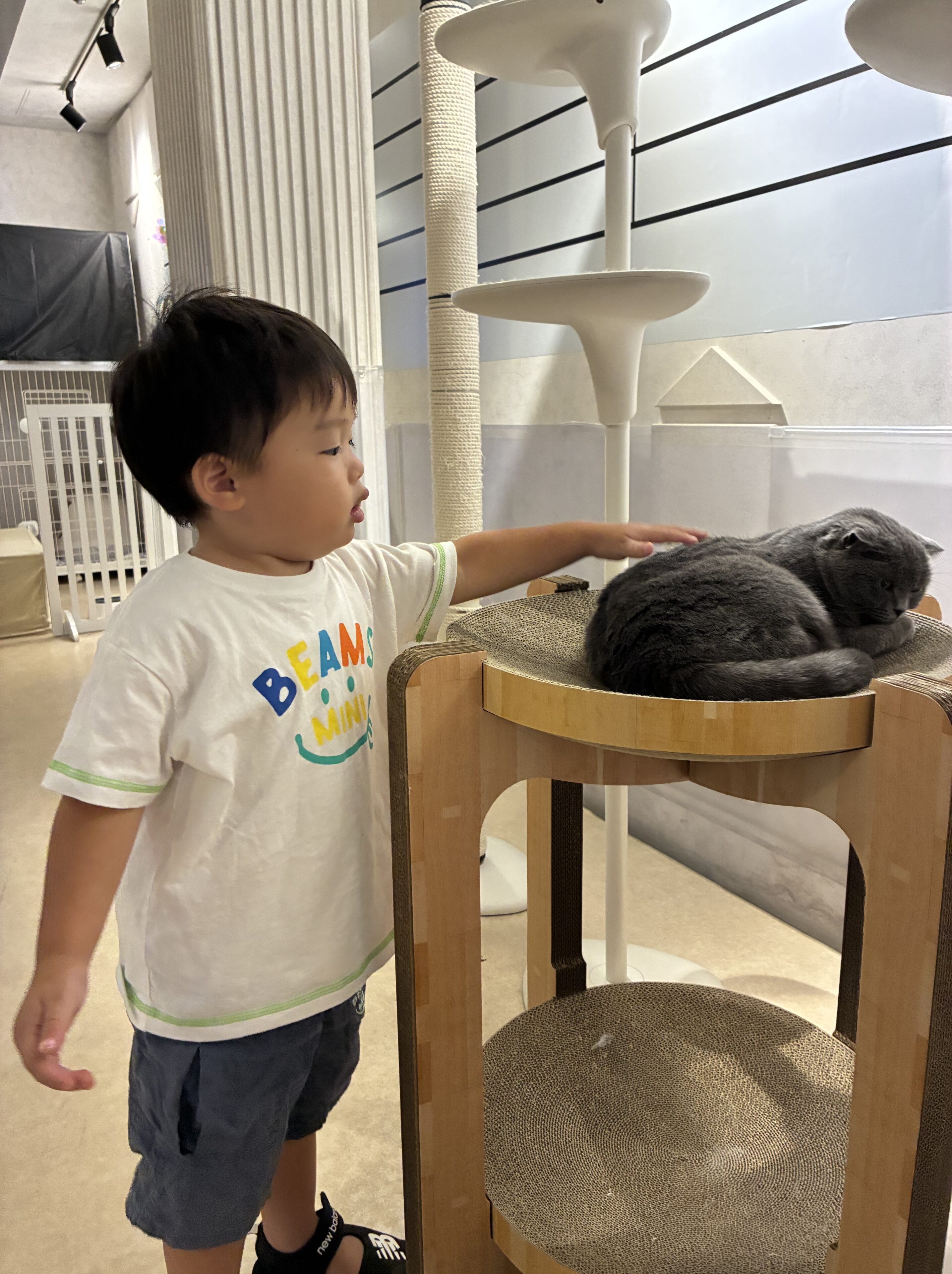 子供達は本物の猫ちゃんと遊ぶのを楽しみにしていたのですが、猫の性格上気まぐれなことが多く、キャットタワーから降りてきてくれずあまり触れ合うことができませんでした。泣