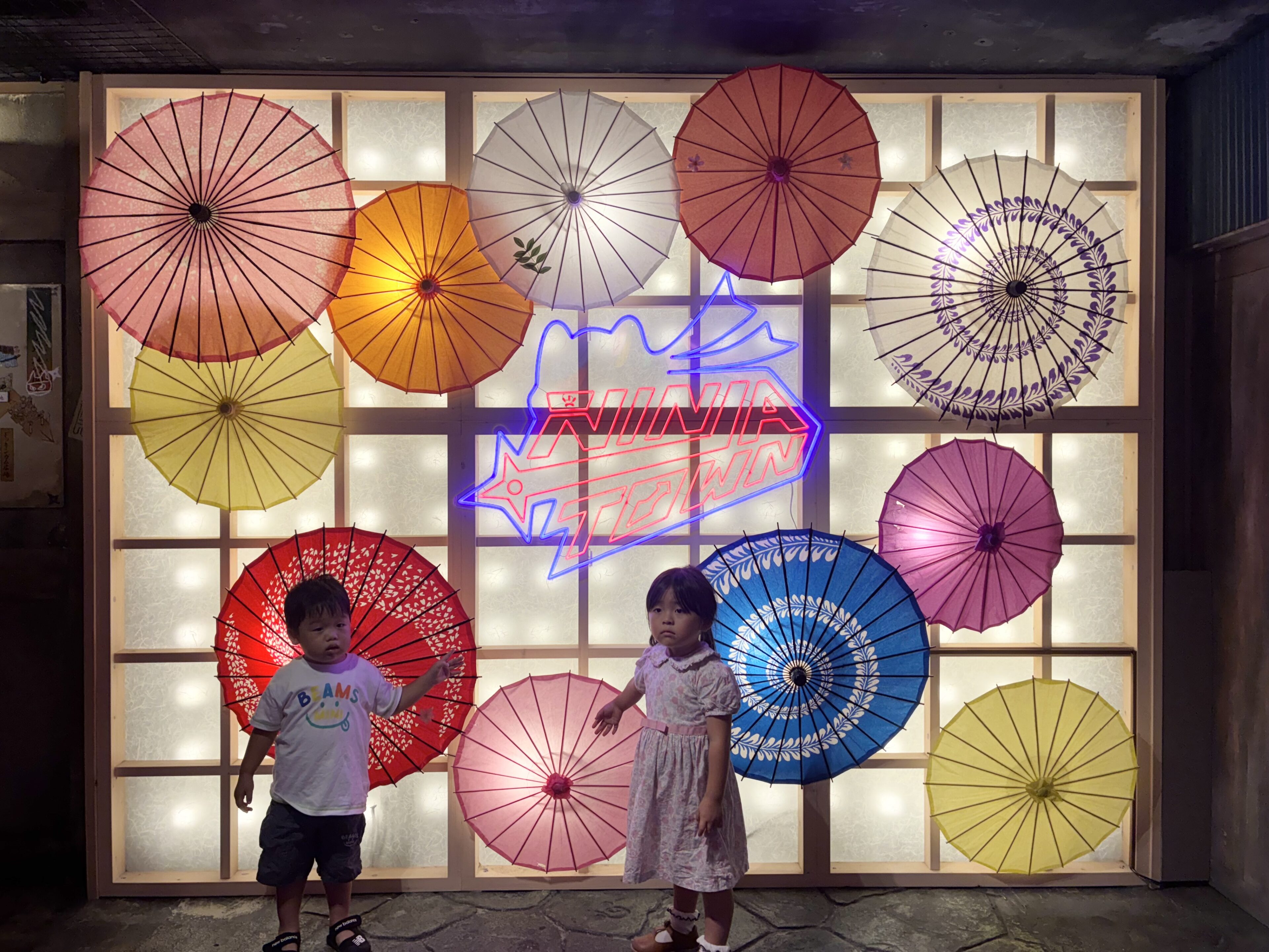 アトラクションが集まる街区です。怖い系の乗り物が多い印象でしたが、エリア自体がお化け屋敷や忍者のような雰囲気で5歳と3歳の子供は怖がっており、何も乗ることはできませんでした。泣