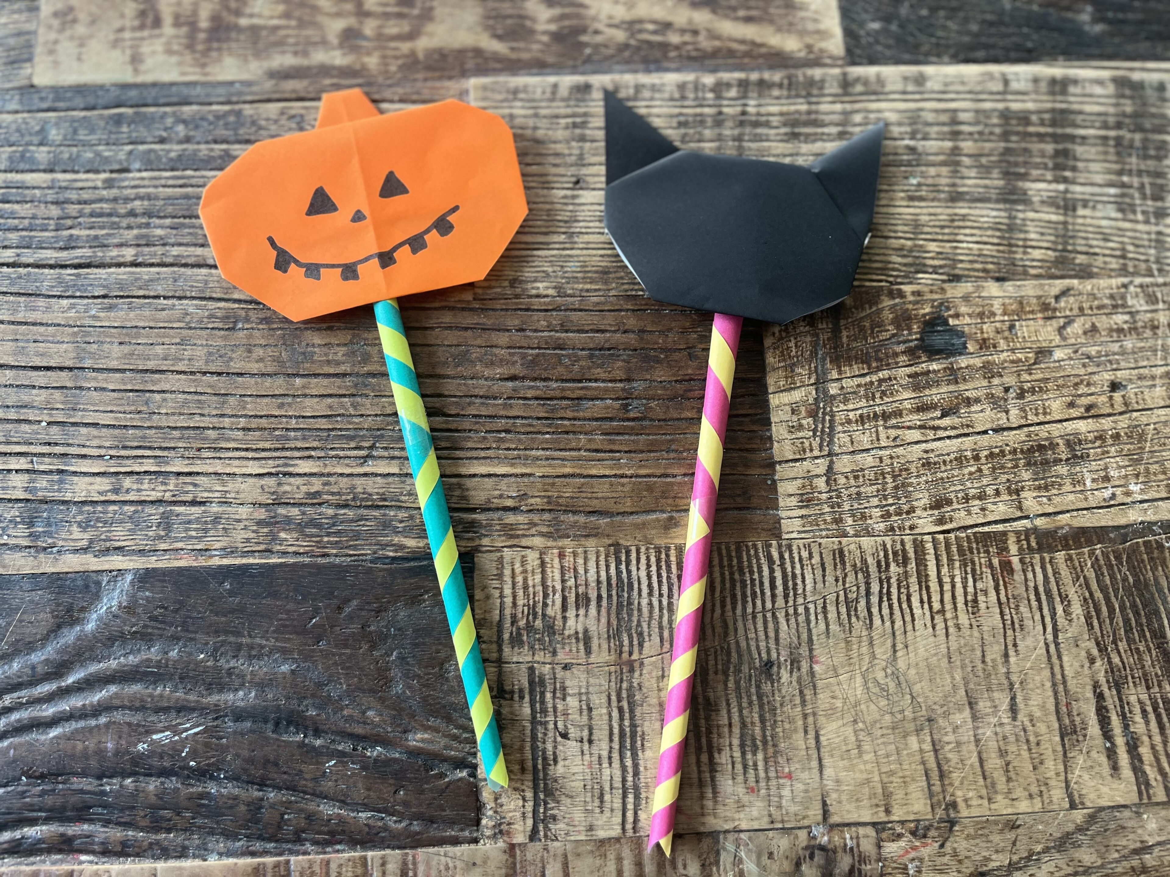 ハロウィン工作!かぼちゃとねこのしましま棒ステッキの作り方