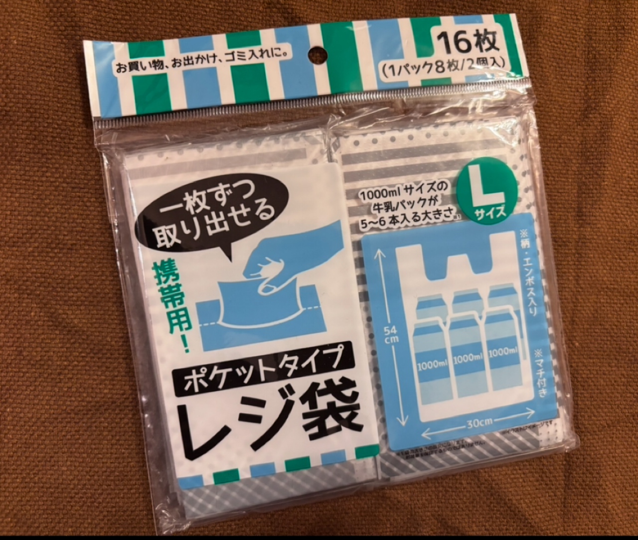 セリアで見つけたポケットタイプのレジ袋は、とってもコンパクト!