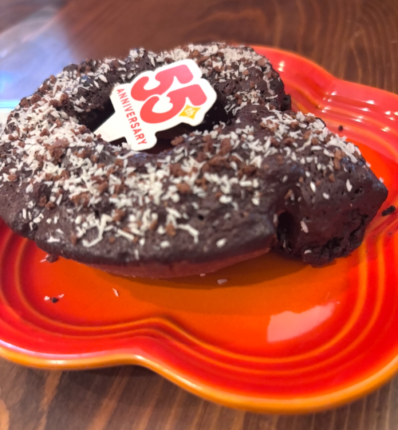 「オールドファッション生地に、チョコフィリング、ゴールデントッピング、ビスケットとザクザク食感がアップしたココアクッキーをトッピング。チョコレートをコーティングしてオーブンで焼き上げ、仕上げにチョコクランチとココナツをトッピング。よりザクザク食感を楽しんでいただけるドーナツです。」と書いてありました!