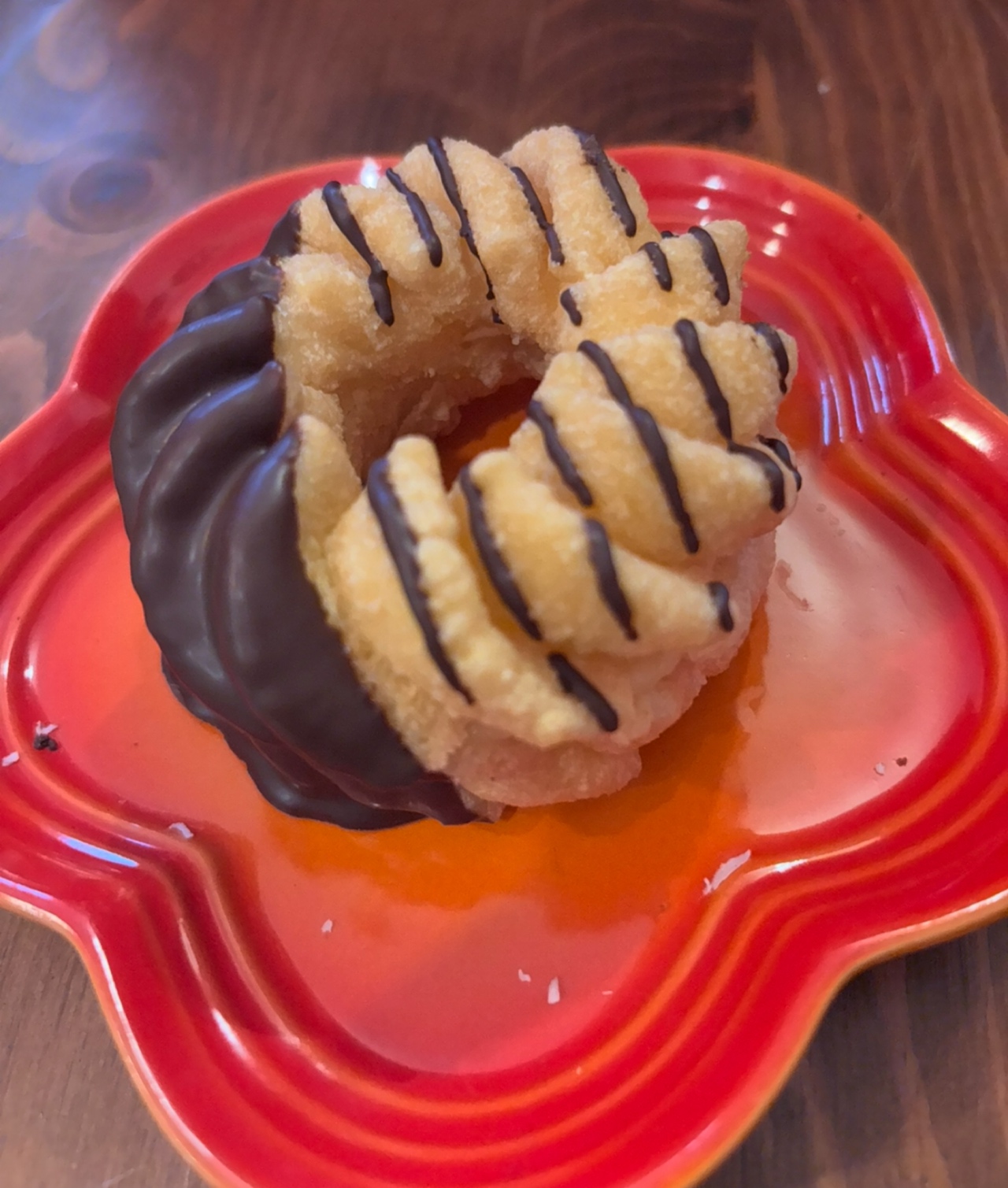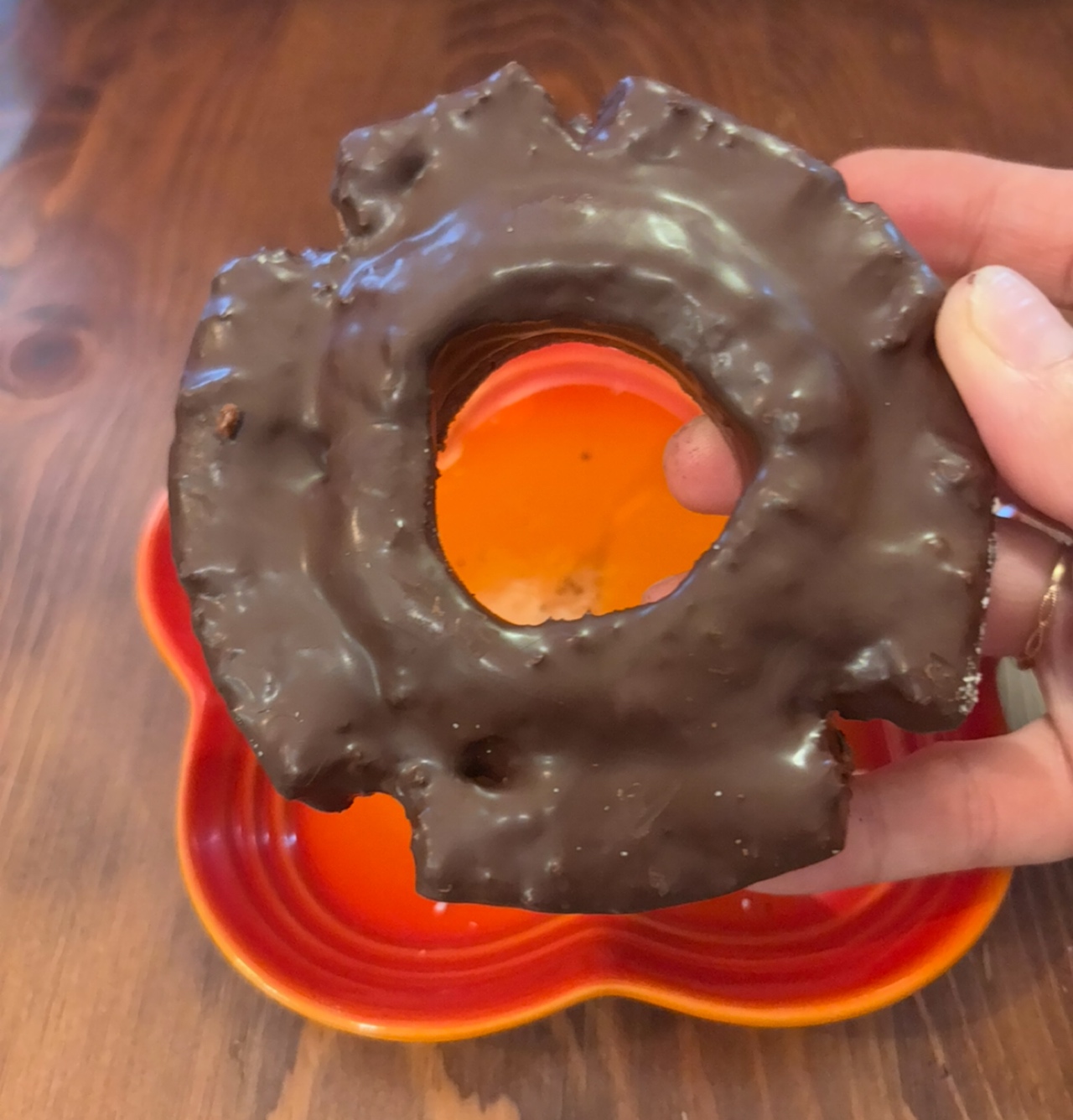 定番の「チョコファッション」は、ドーナツの端に、少しだけチョコレートがかかっていますよね!