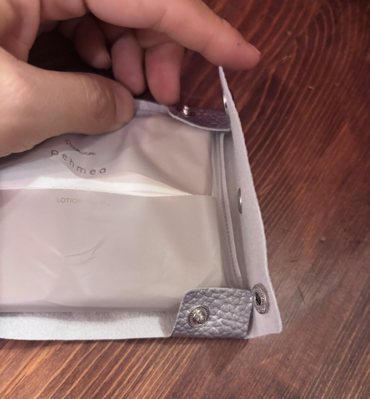 サイドのスナップが外れるので、ポケットティッシュが入れやすい!