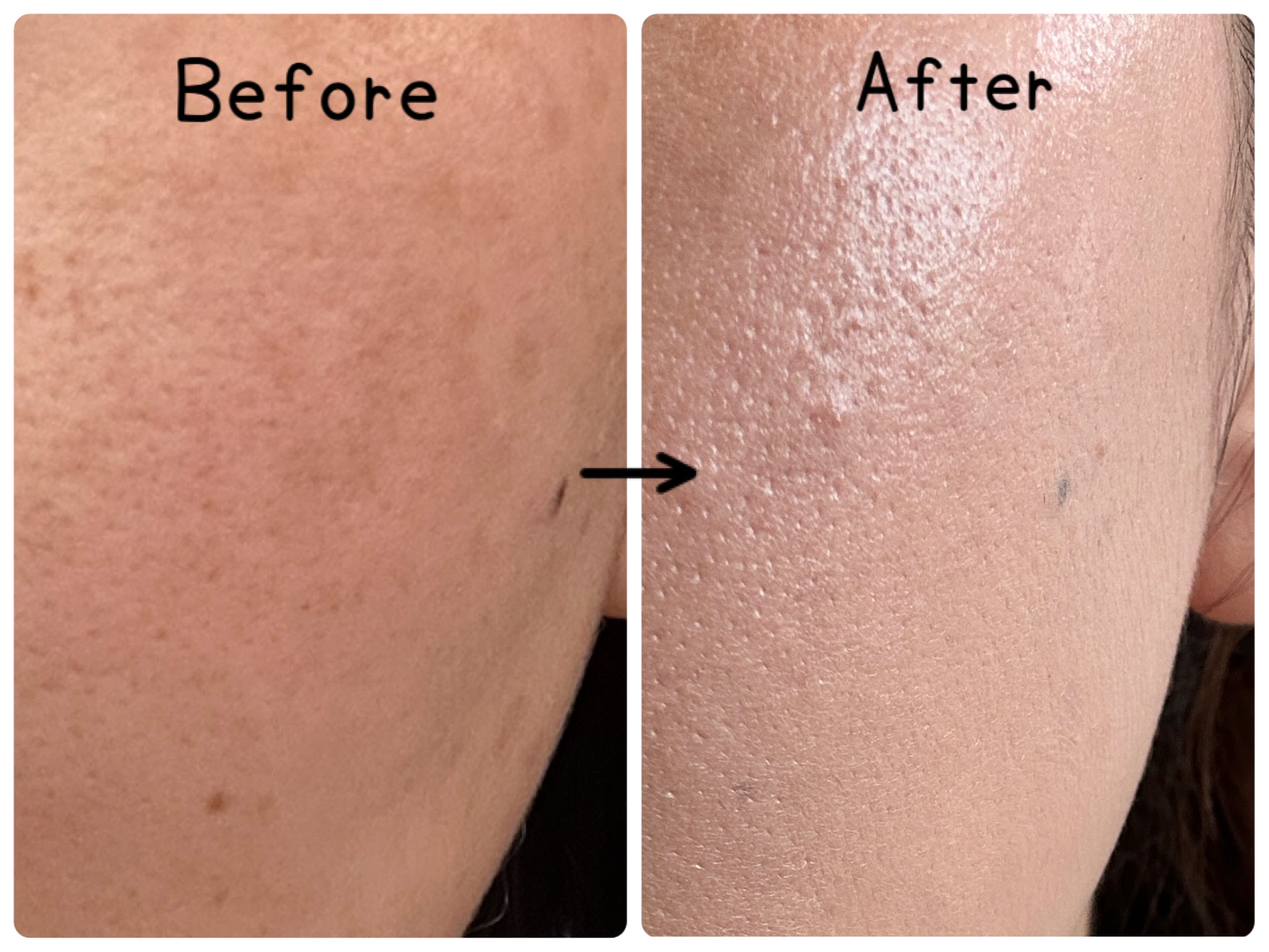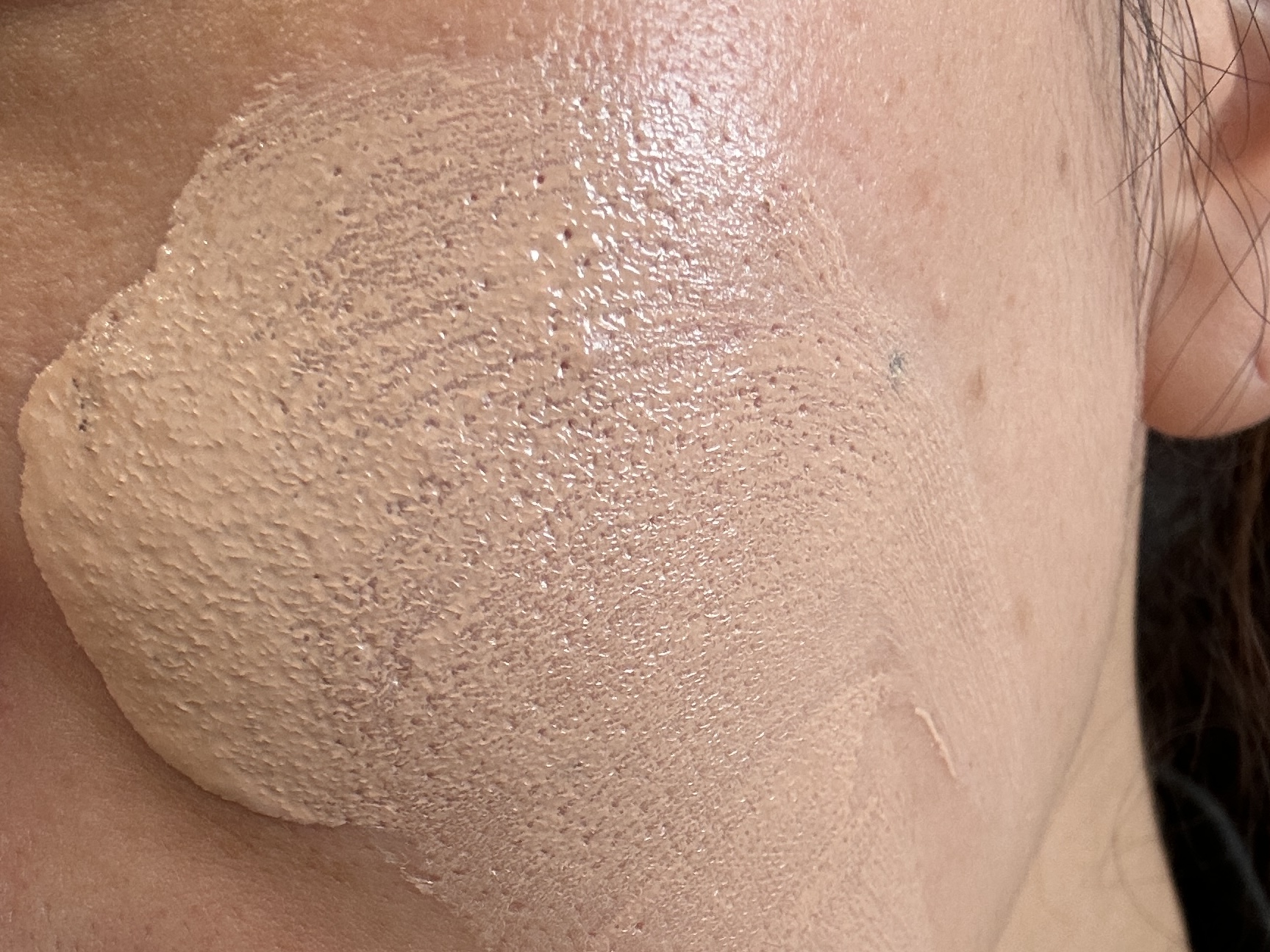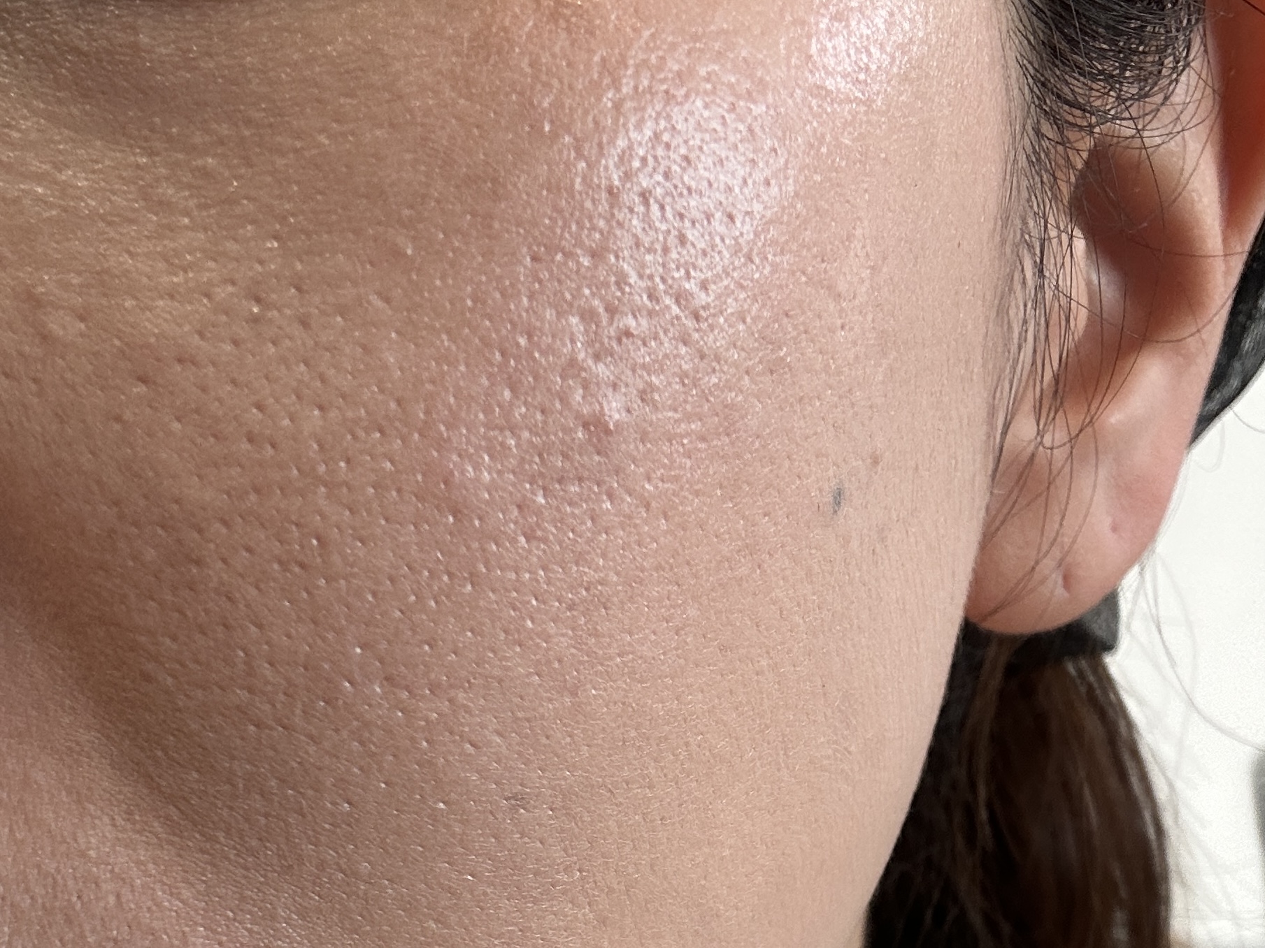 私の毛穴は頑固すぎて(笑)あまり隠れませんでしたが、右側にあったシミが隠れたの分かりますか?