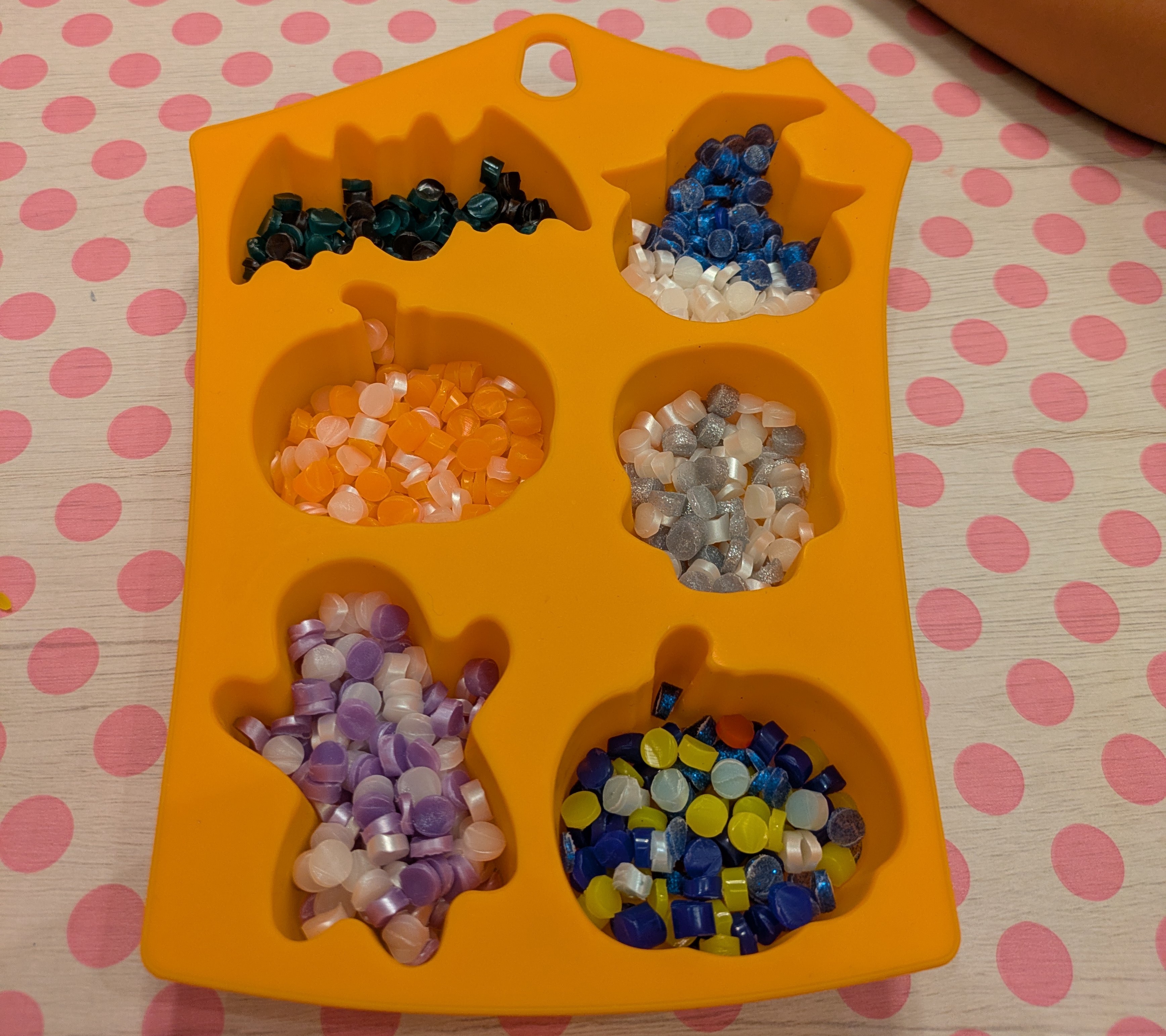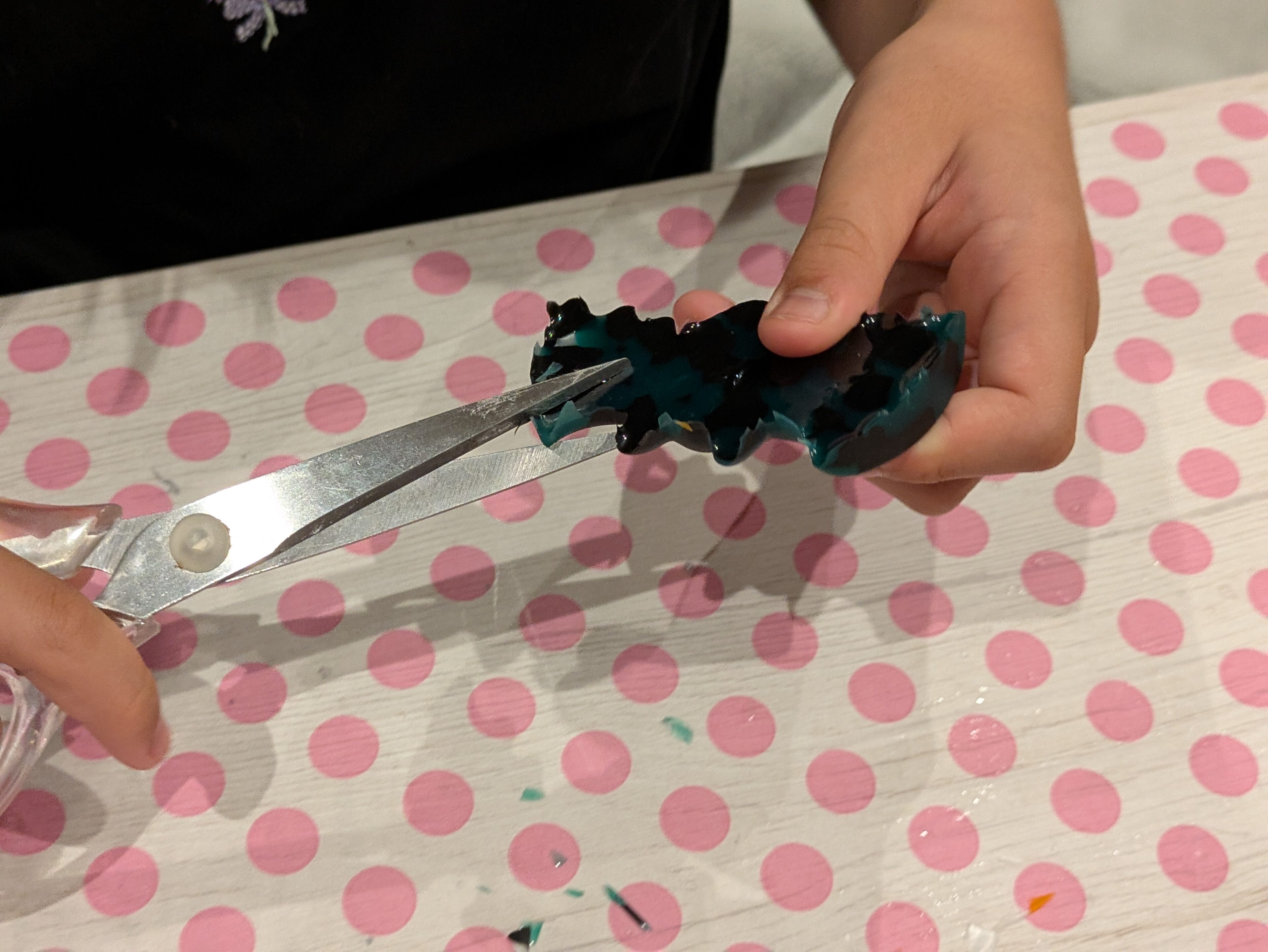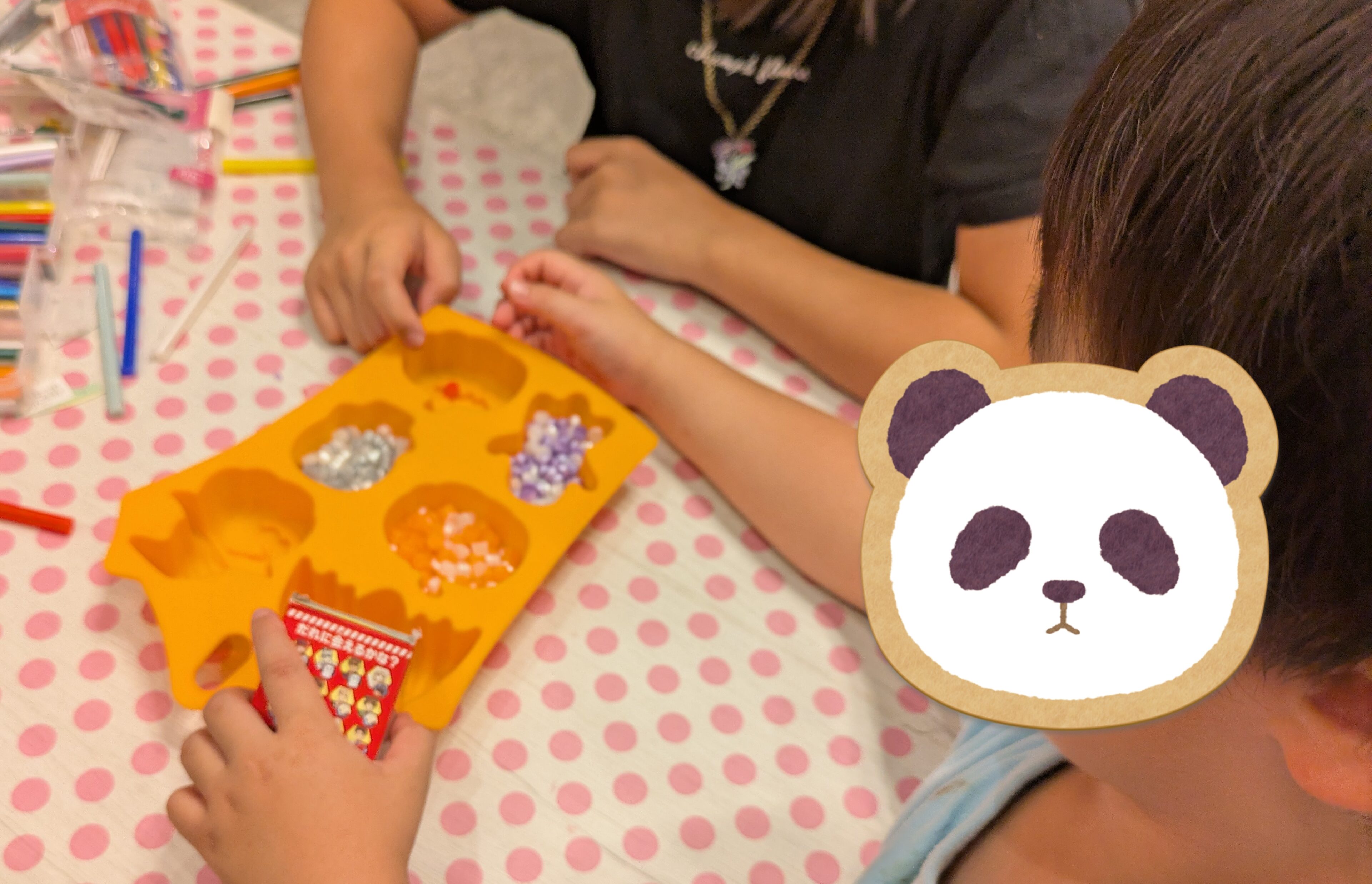 ※チャレンジ精神旺盛の次男(3歳)がいる我が家では、カットしたグルーの色を選ばせて型に入れる作業を手伝ってもらいました。細かい作業になるのでご家庭の状況に合わせてご判断ください。