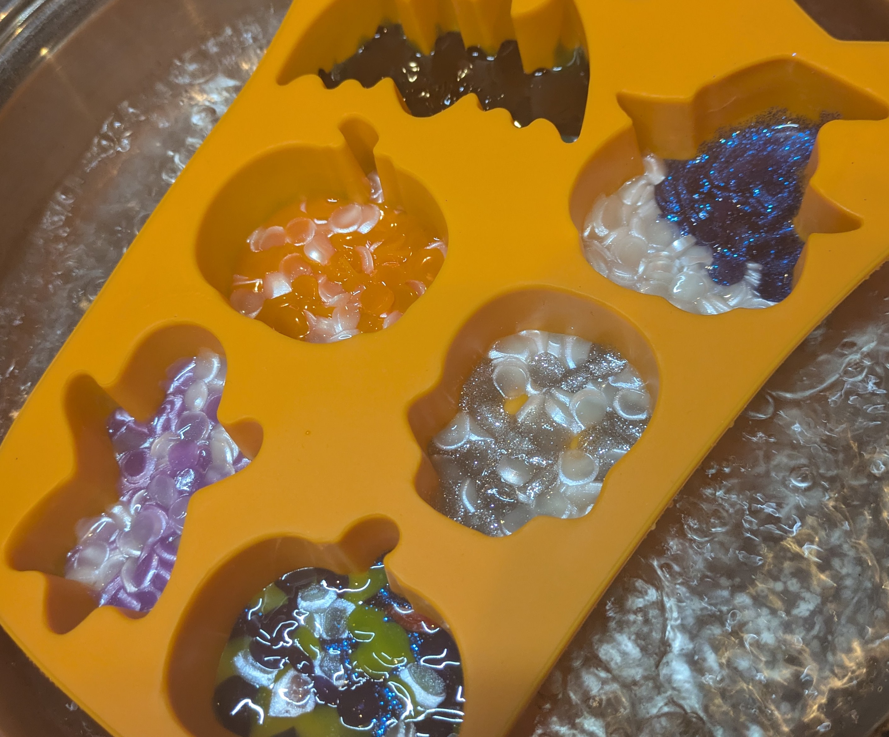 完全に冷えた後、型から固まったグルースティックを取り出します。