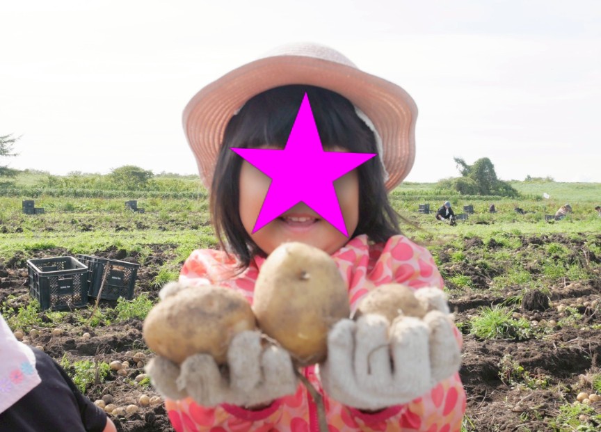 インスタで知った「芋ほり対決で優勝したチームには新米10kgとカラフルジャガイモ20kgをプレゼント!」というなんともまぁ北海道らしいこの企画。たまたま知ったのが年少長女の親子遠足の日で、参加してみたいから勇気を出して仲良しのママたちに声をかけてみよう!と思いました。