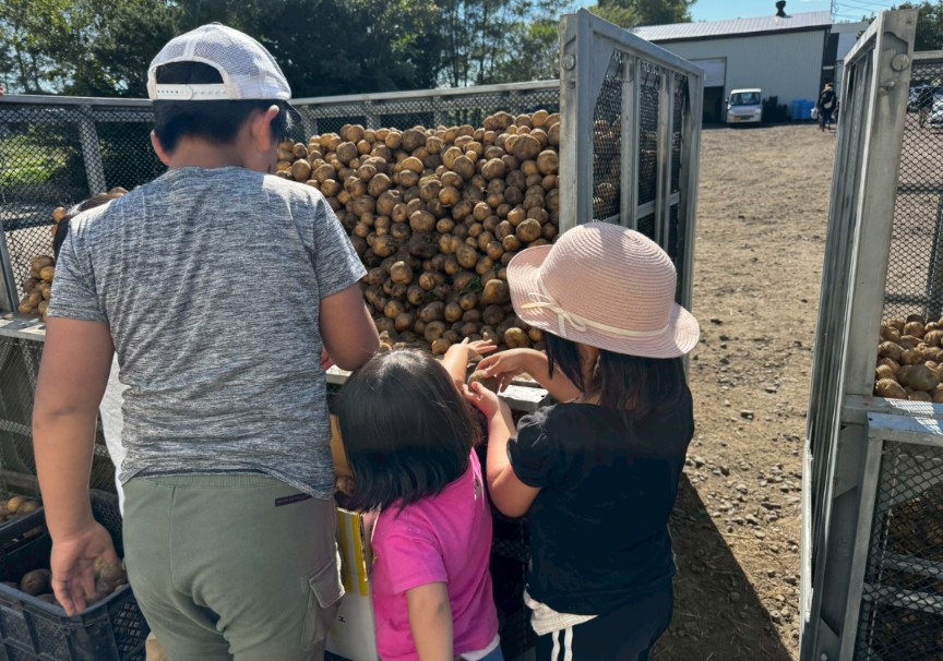 参加賞のジャガイモ5kgの他に優勝賞品のカラフルジャガイモ20kgも全て4家庭で山分けし、沢山の食材に「家計が浮くね」と顔を見合わせてママ同士にんまりしました。