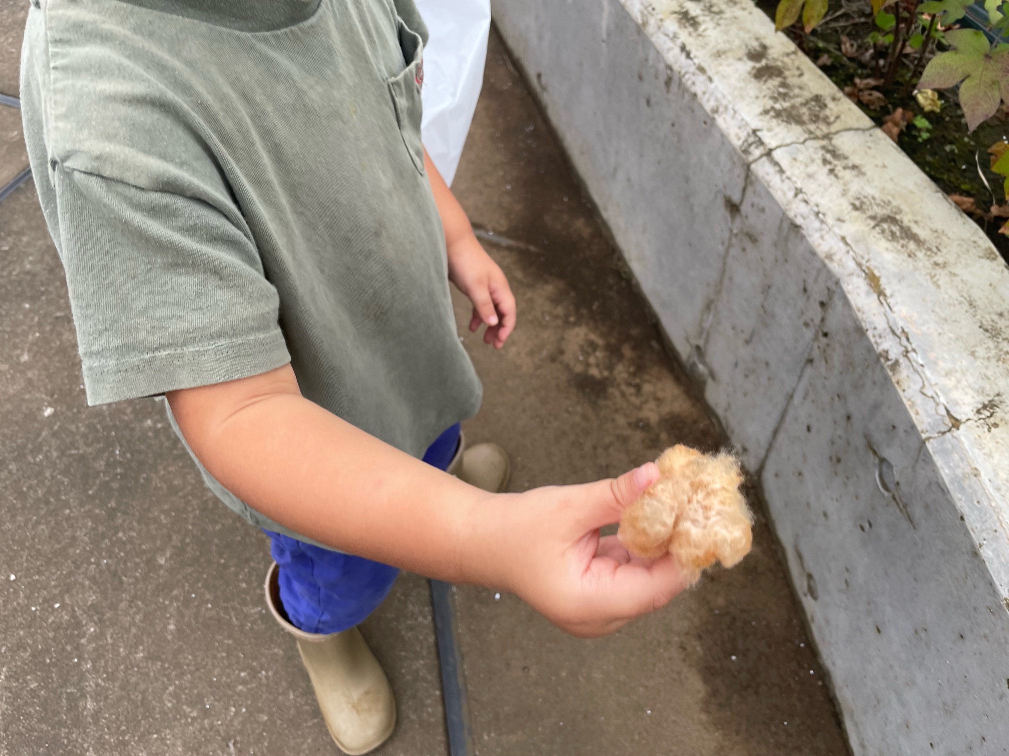 今回、オーガニックコットンの収穫体験をさせていただき、自分たちが普段着ている綿がどうやってできているのか、洋服ができ上がるまでの一部の工程を知ルことができて、私自身もすごく勉強になりました。実際の綿を触った時のふわふわした柔らかさが気持ちよくて、本当にびっくりしました。それぞれの素にはの特性はありますが、身につける衣服は、自然素材からできているものを子どもたちにも着用させたいなと感じました。子どもたちも収穫と綿繰り機のどちらも楽しかったようで、良い経験ができたなと思います。