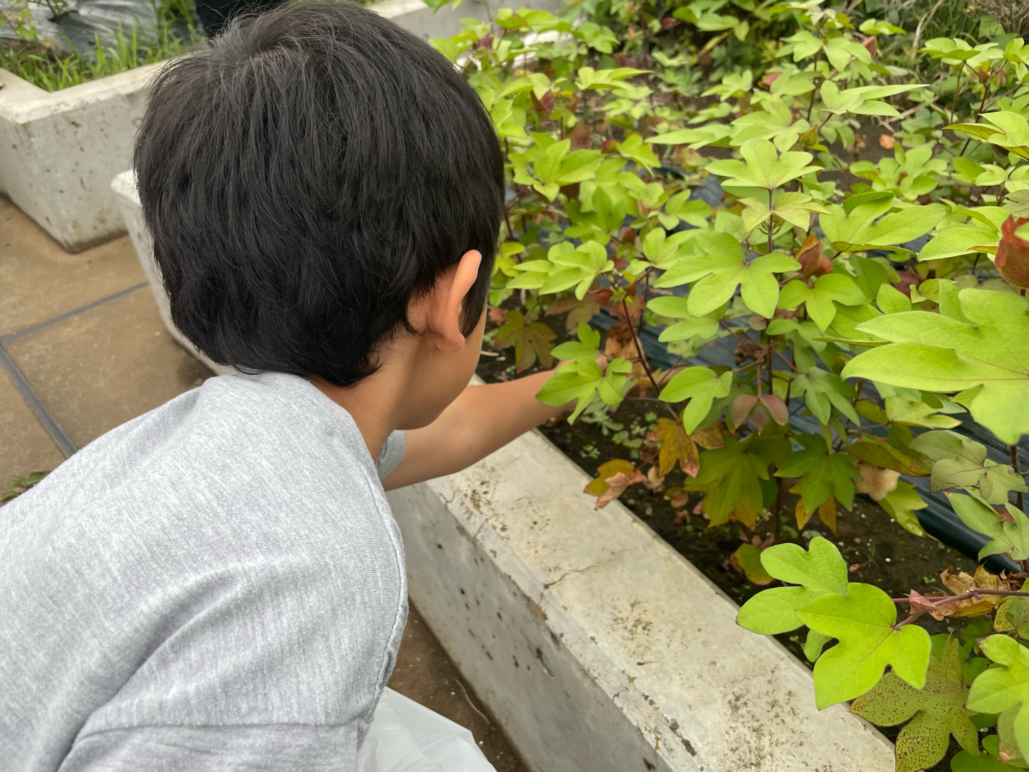 こんにちは!先日、5歳と3歳の息子たちが「これは何〜?」「あれは何〜?」と質問してきました。質問は家にあるものばかりで、床を指しながら、「これは何でできているの?」とか、「壁は何でできているの?」など、素材について興味を持ったようです。たまたまオーガニックコットンの収穫体験イベントがあることを知り、いつも着ている洋服はコットンでできているんだよ!と説明すると興味を持ってくれたので、イベントに参加することにしました。