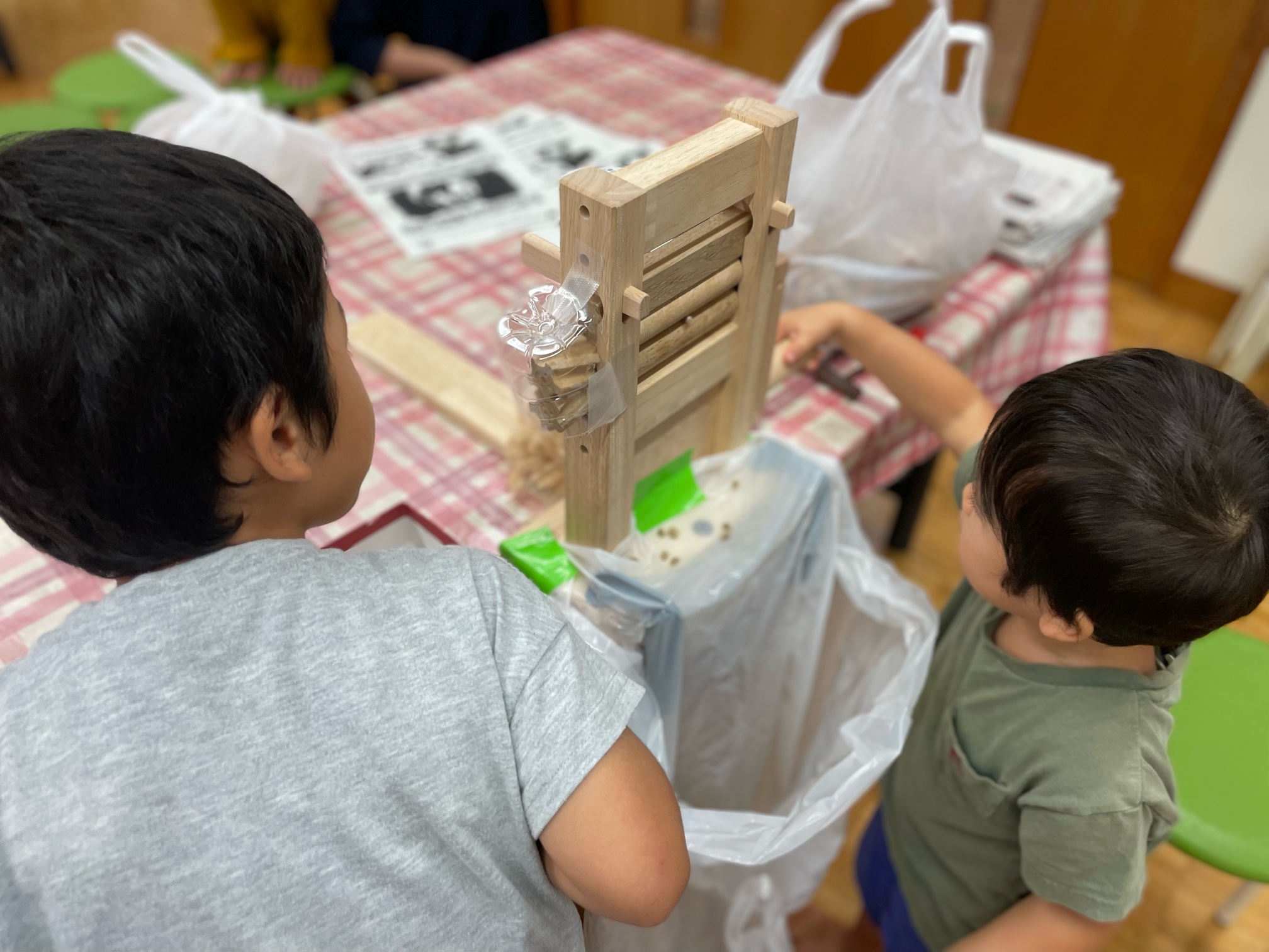 これだけでも十分に親子で収穫を堪能した気分になりますが、まだまだ続きます!綿を取った後は、綿繰り作業に移ります。