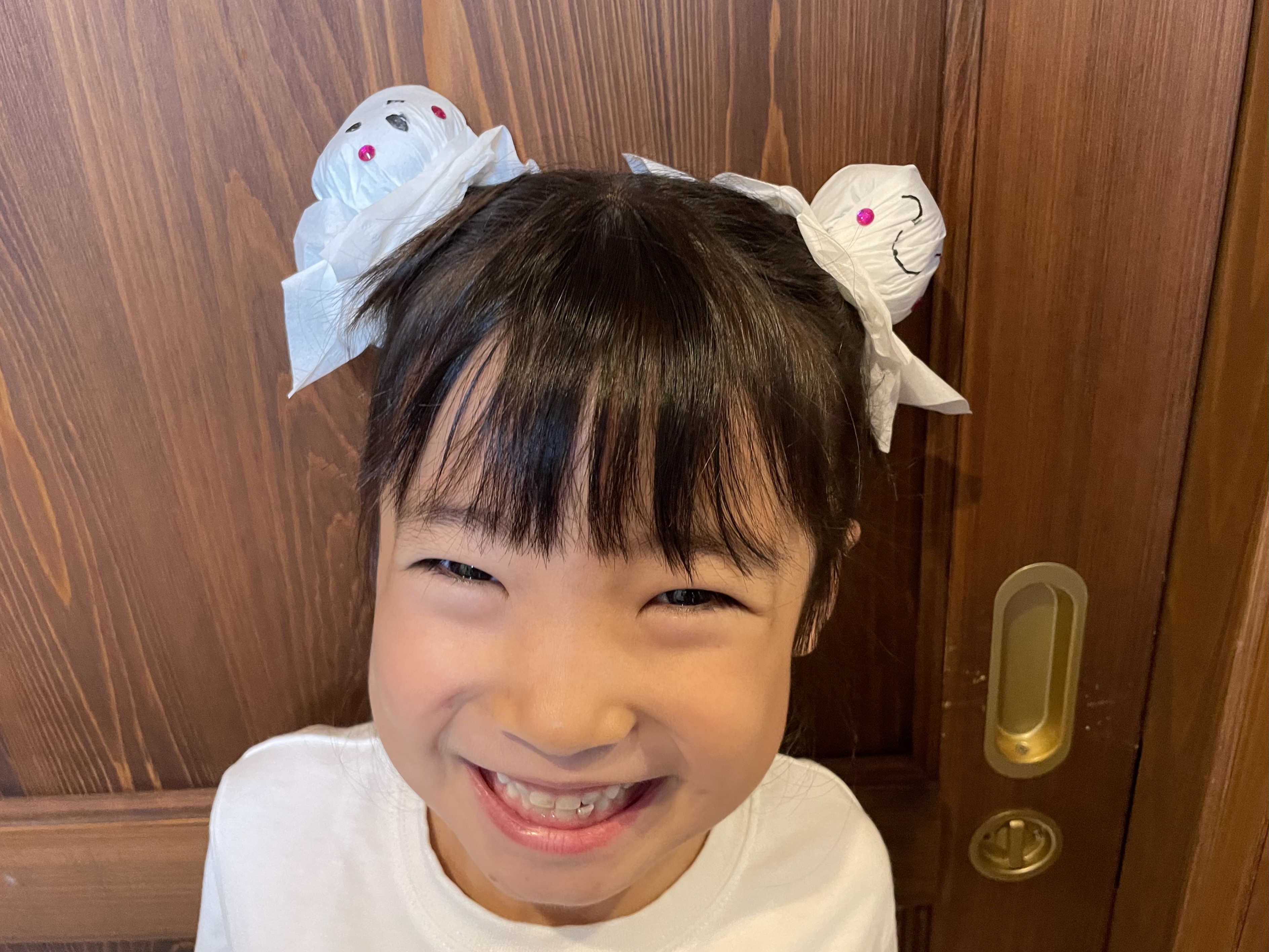 ツインテールにする時は、オレンジや黒のゴムに変えるだけで、ハロウィーン仕様になります!