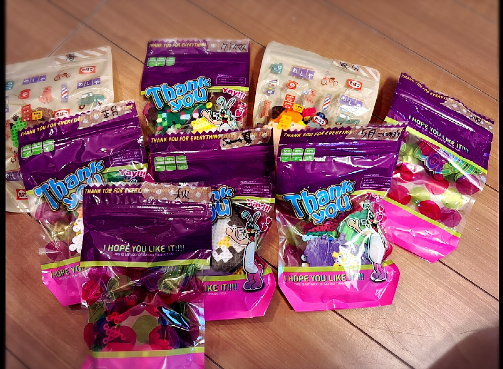 こんな感じで、袋にそれぞれまとめて保管しています!
