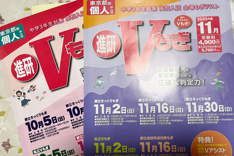 受験生になると欠かせないのが「模試」。内容や実施回数は塾や志望校によっても個人差がありますが、都立志望の中学生がよく受ける「Vもぎ」は、1回あたり5,300〜6,000円ほど。