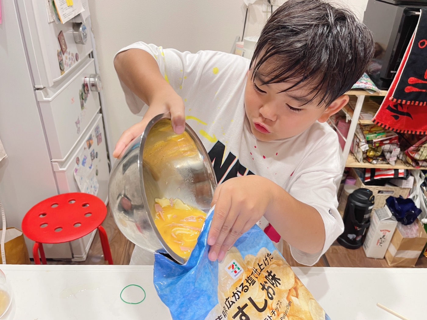 しかも家にあるポテトチップスで作る?楽しそうだったので、小3男子にお任せしてみることにしました。