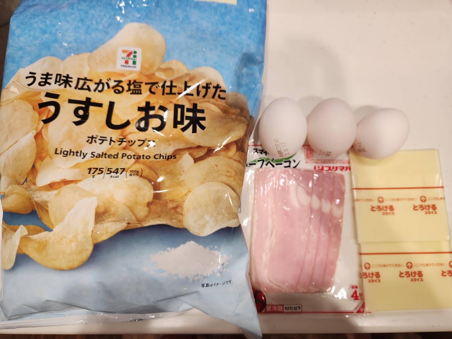 味付けは全くしていませんが、ポテチはうす塩味だし、ベーコンもチーズも入っているので程よい塩気が最高です。