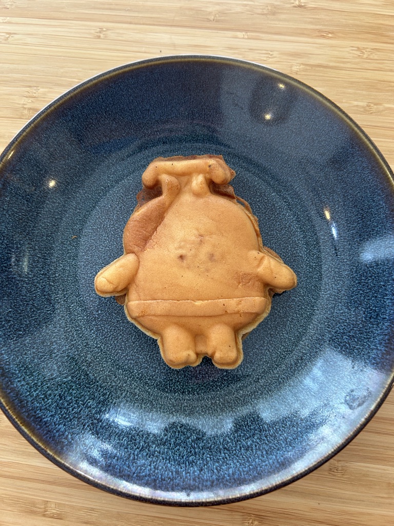 ふわふわの今川焼きのような、やさしいおやつ。クリームたっぷりですが、甘すぎずぺろりと食べられます。
