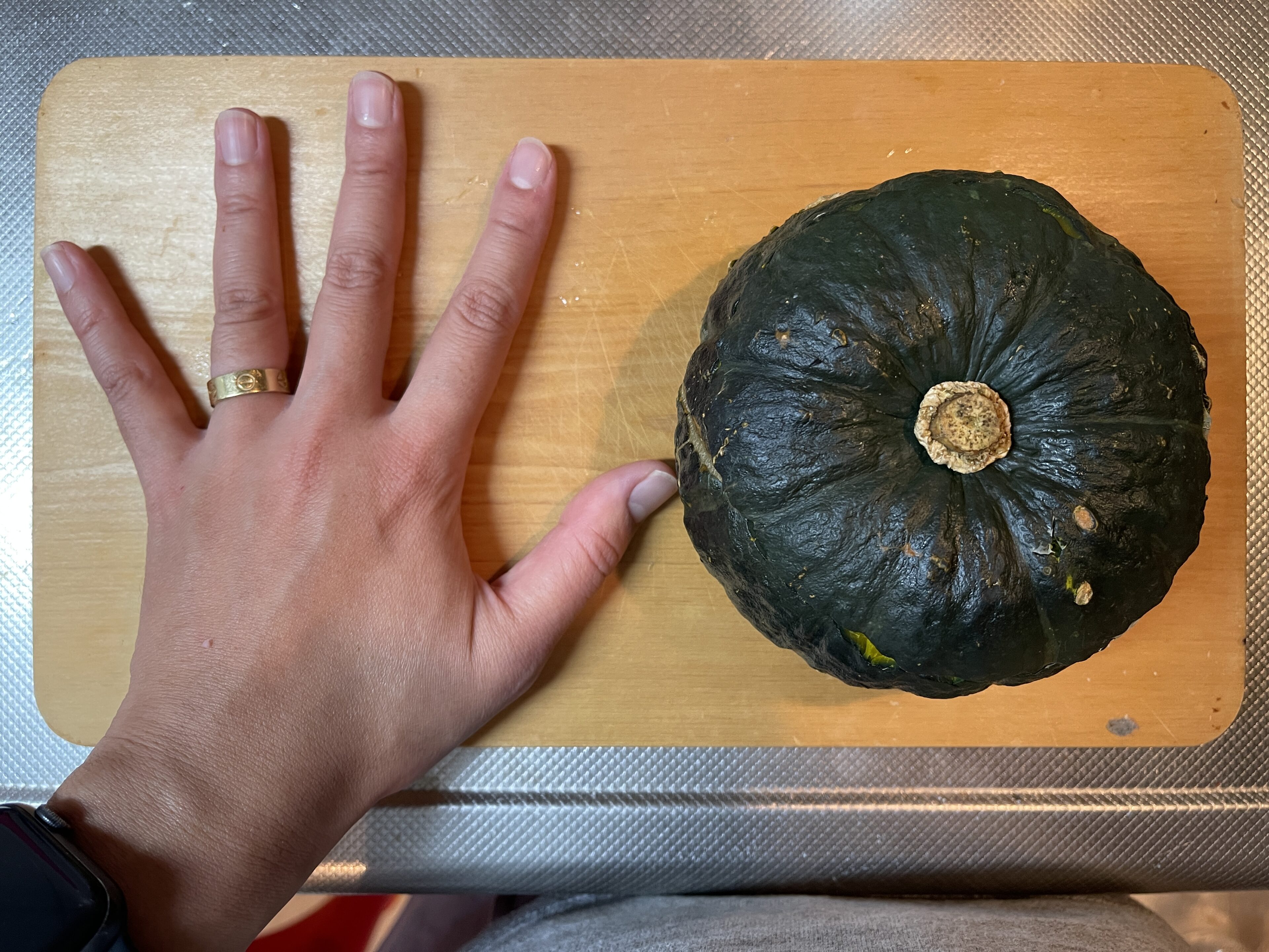 肌寒い日も増えてきたので、坊ちゃんかぼちゃを丸ごと使ったグラタンにすることにしました。