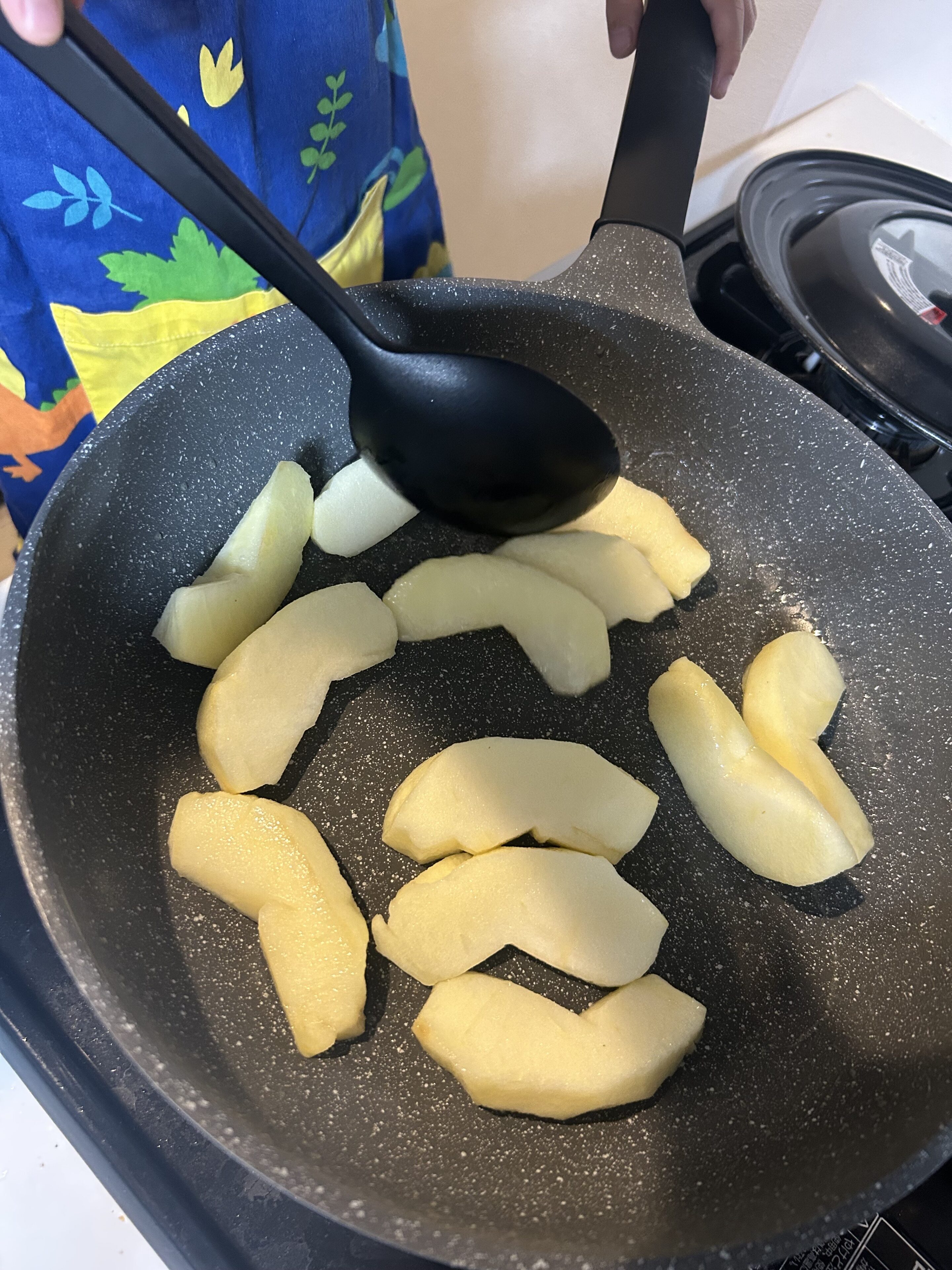 そしてフライパンでりんごを炒めながら、