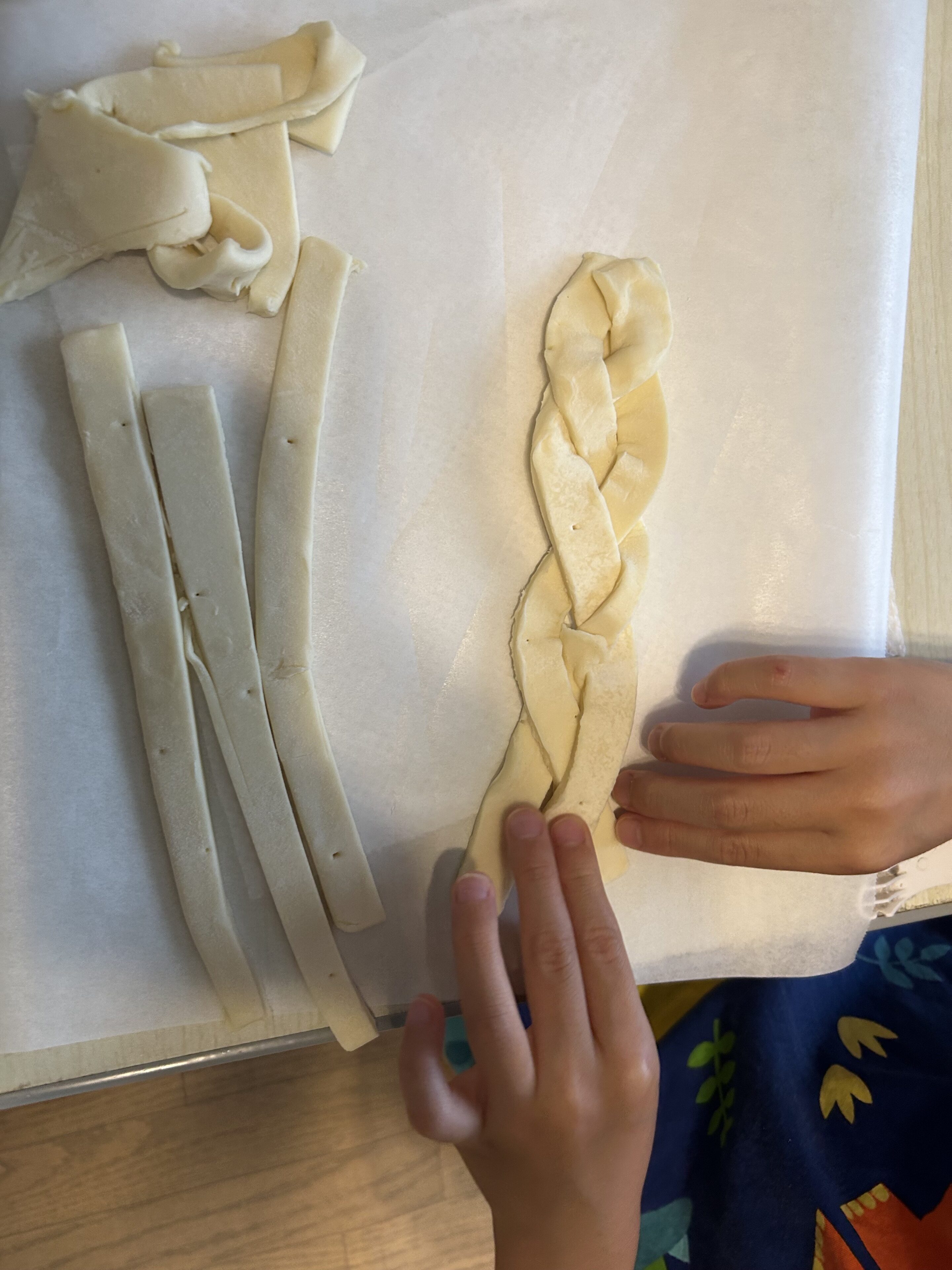 パイ生地を三つ編みや格子状に編む作業もあったのですが、