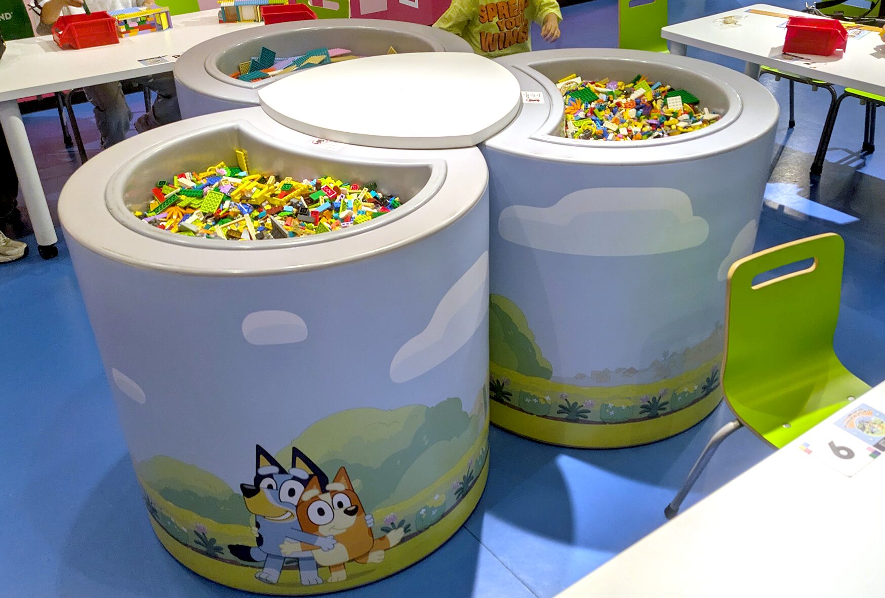 普段はレゴで自由に遊べるワークショップエリアですが、コラボ期間中はなんと内装がブルーイ仕様に大変身!