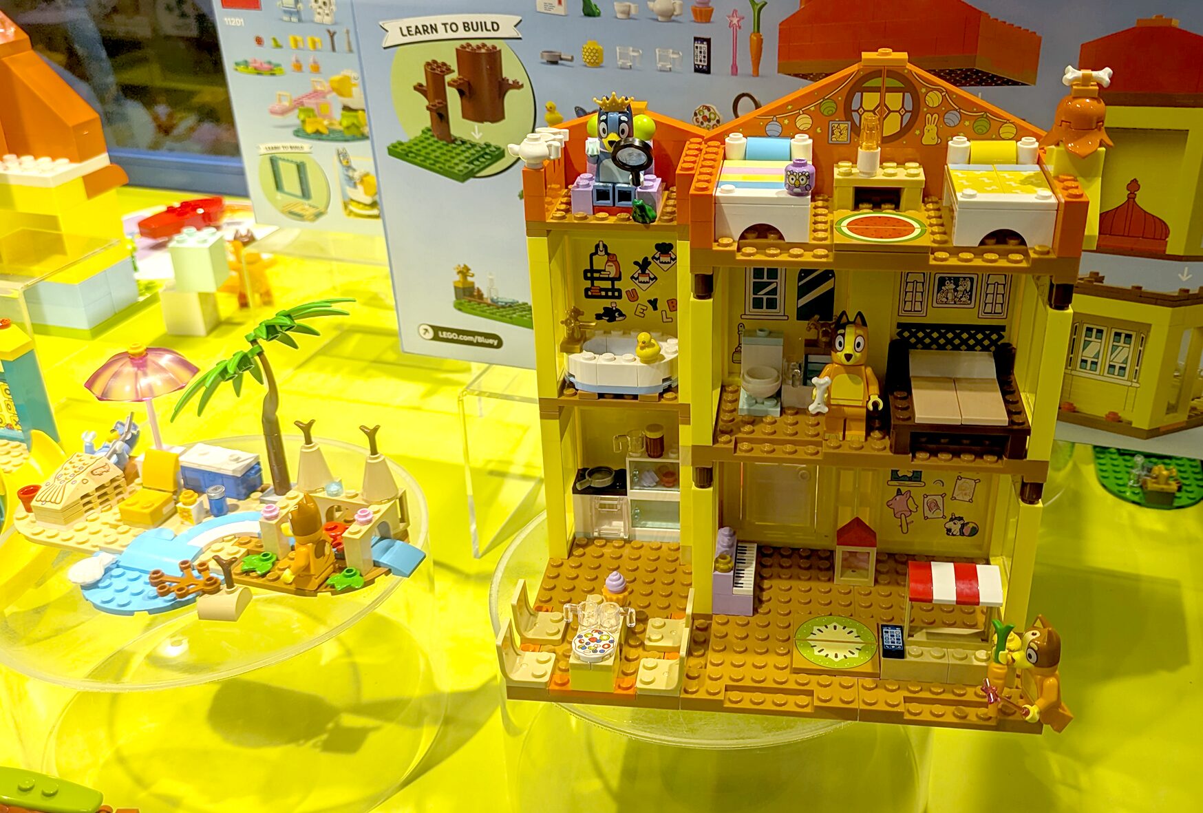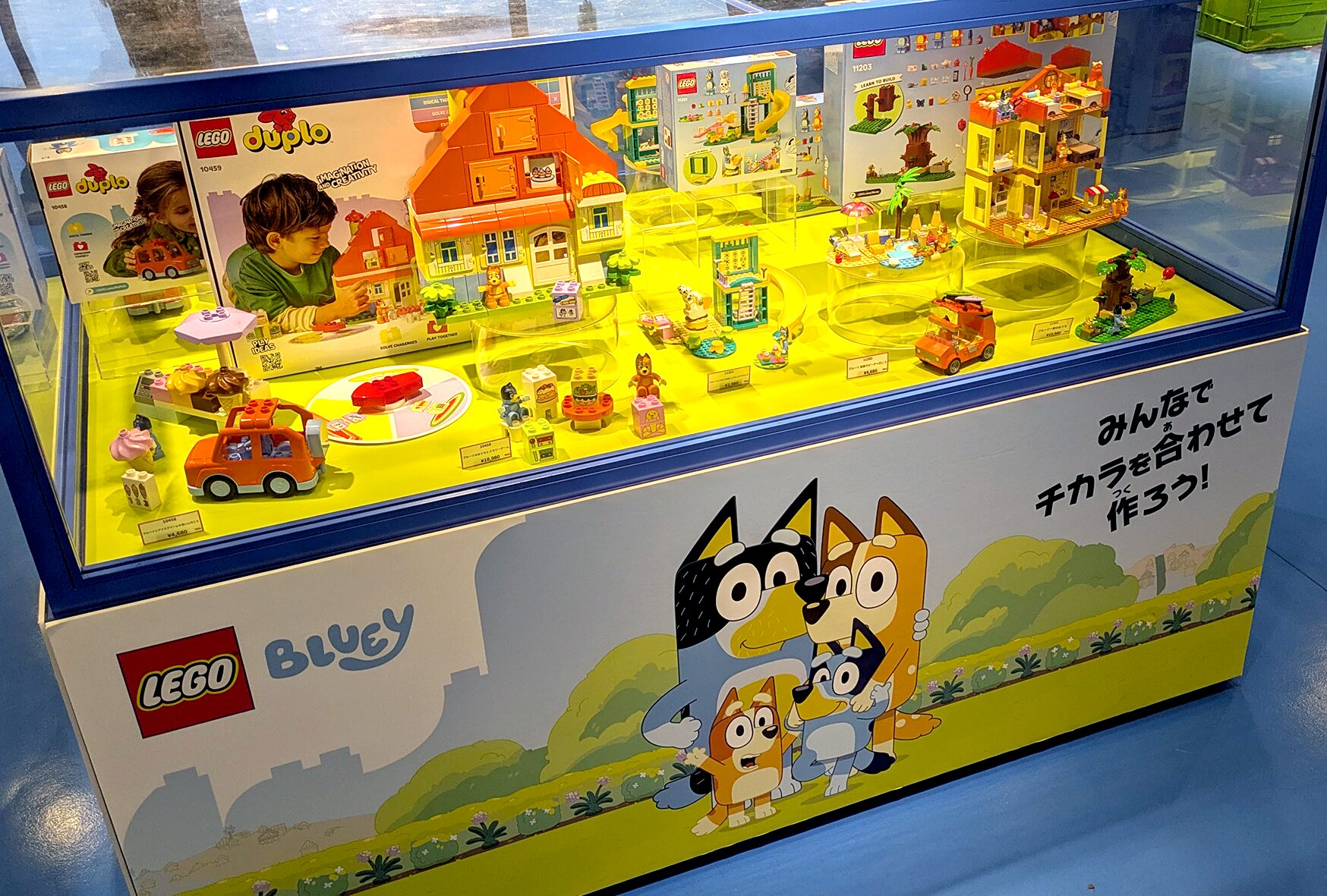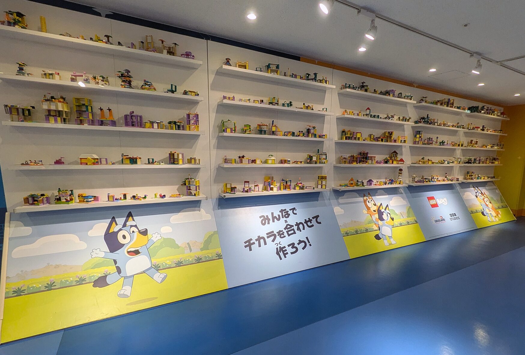 ブルーイの巨大レゴオブジェやブルーイのレゴブロックが展示されていて、アニメの世界に飛び込んだような空間に子どもたちも大はしゃぎ!